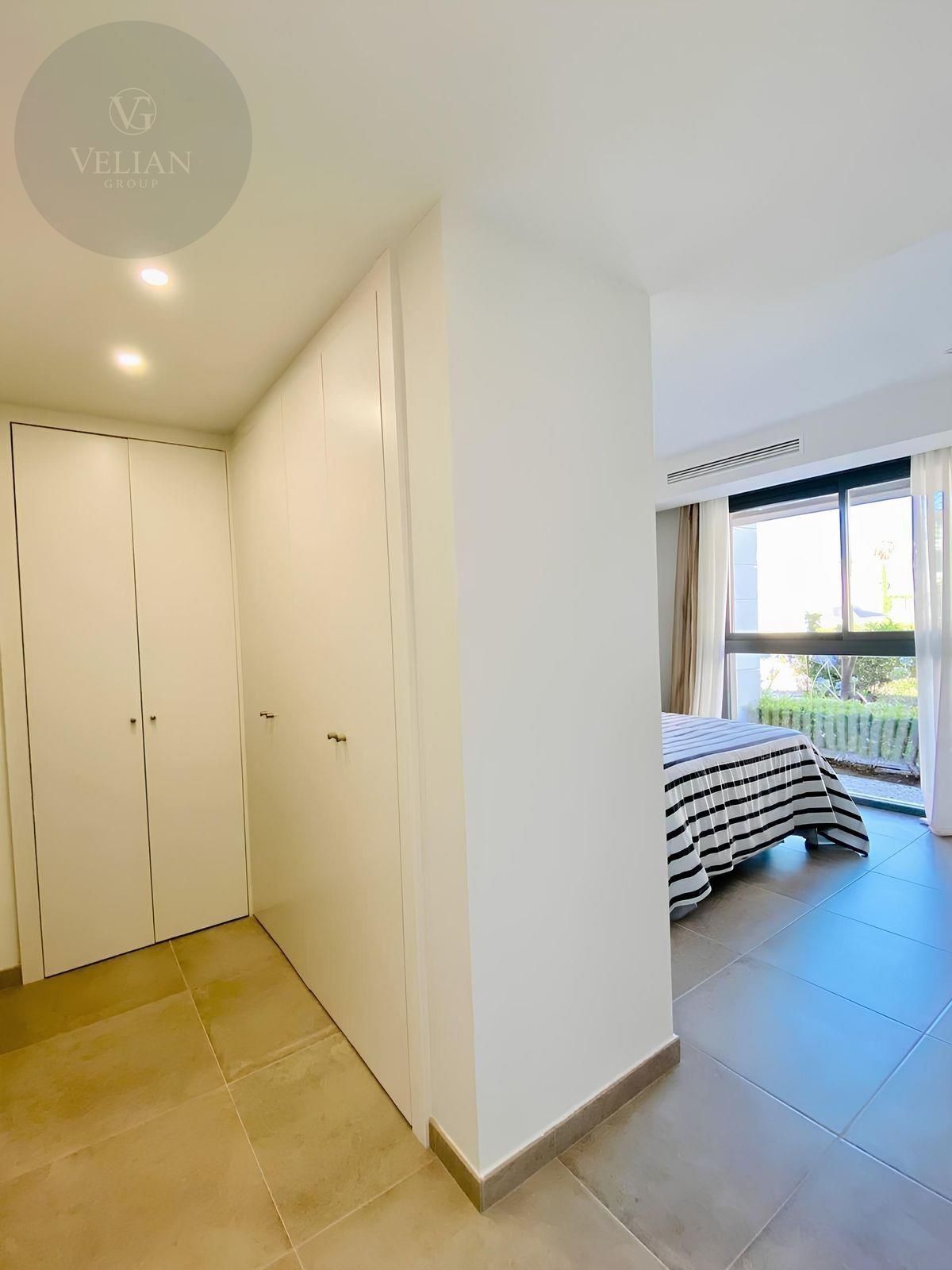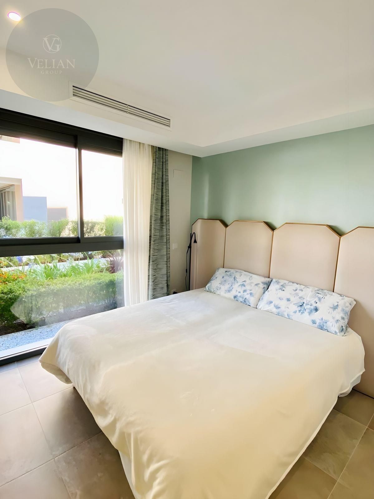 Ambos dormitorios tienen vistas directas sobre el jardín y las zonas comunes, hay una piscina comunitaria y también una piscina comunitaria en solarium para disfrutar de las vistas abiertas al mar y a las montañas.