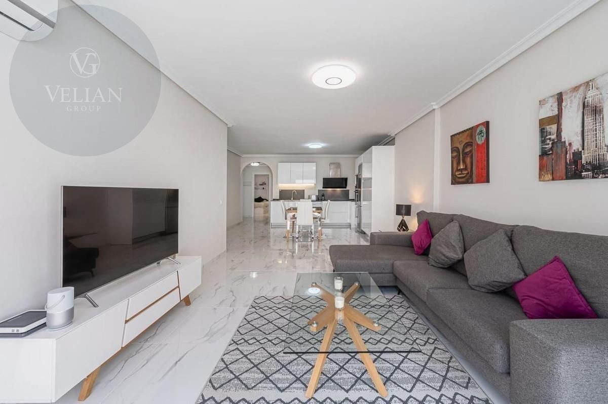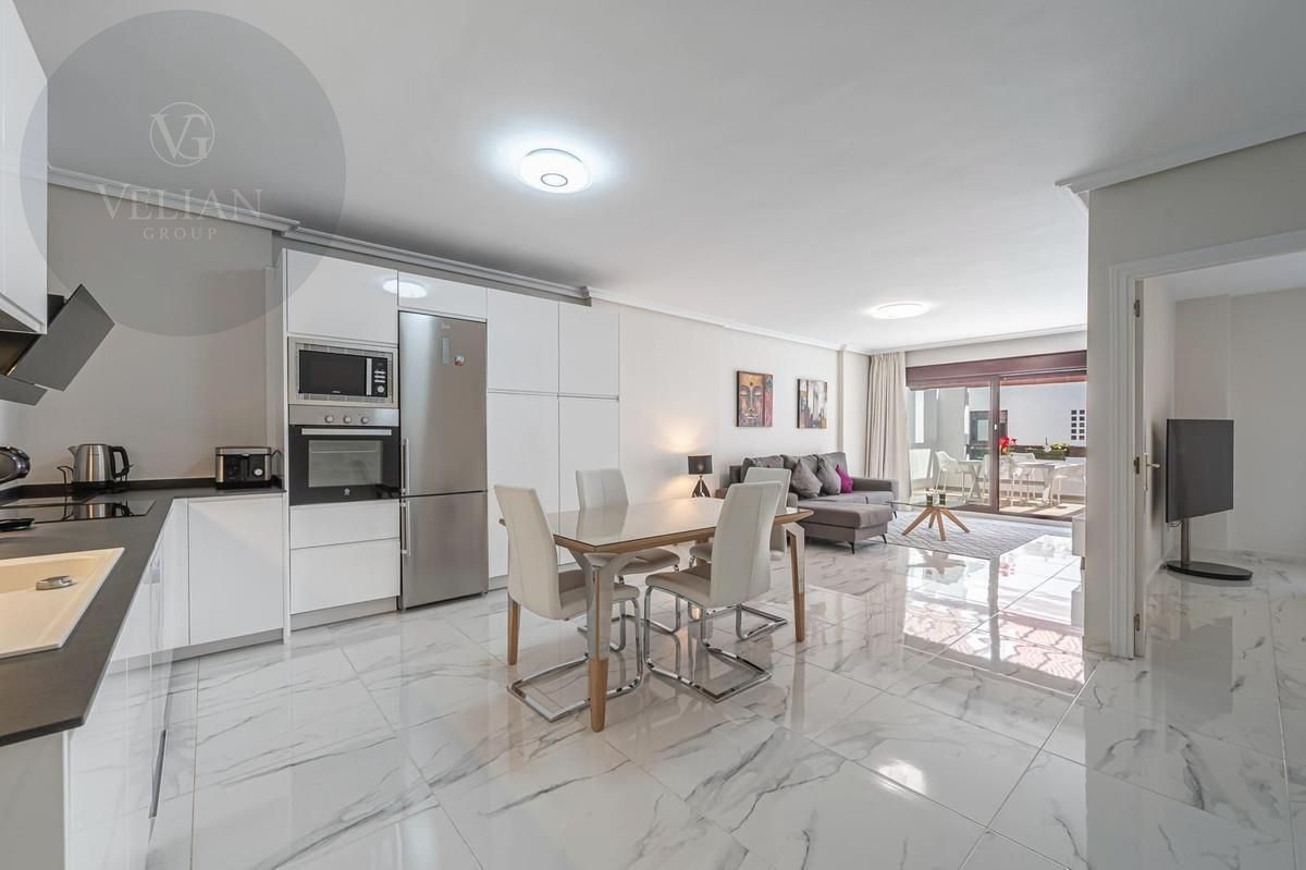 Cuenta con 3 dormitorios y 2 baños, uno de ellos en suite, una cocina abierta totalmente equipada que conecta con el comedor y el salón, y una terraza de aproximadamente 15 m².