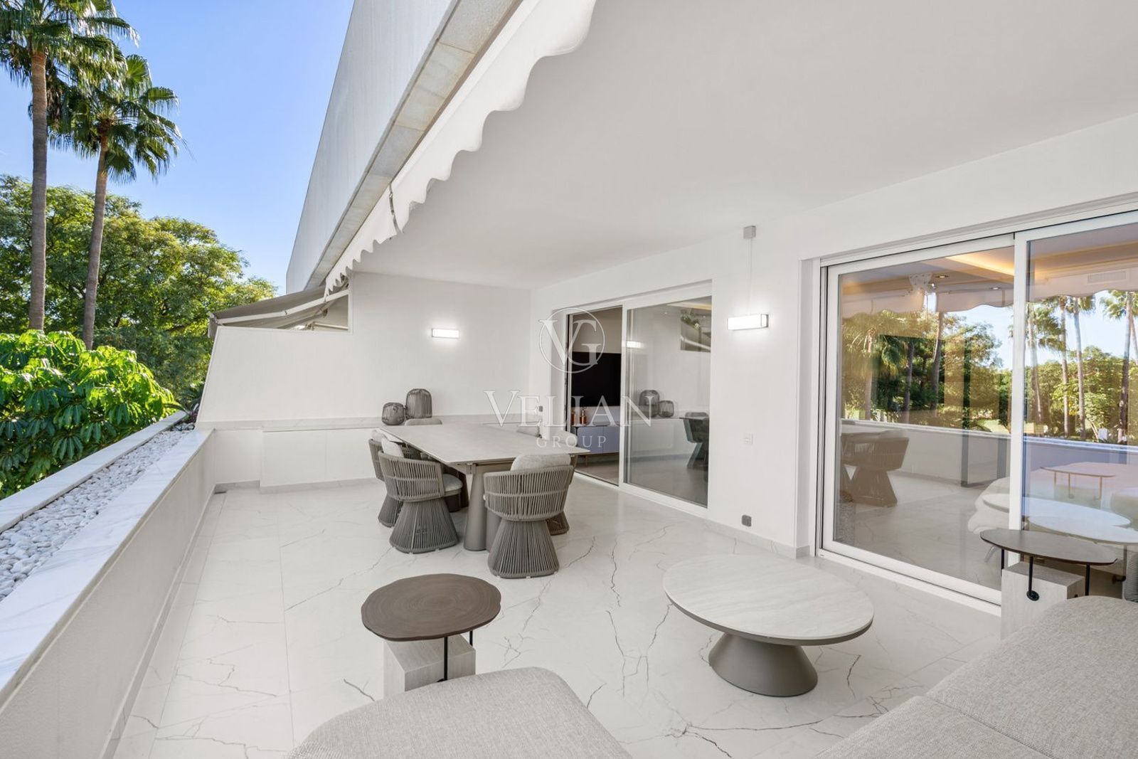 Este apartamento excepcionalmente amplio y luminoso ha sido renovado recientemente con materiales de primera calidad y mobiliario de diseño, ofreciendo un hogar listo para entrar a vivir en una de las comunidades más prestigiosas de Nueva Andalucía.