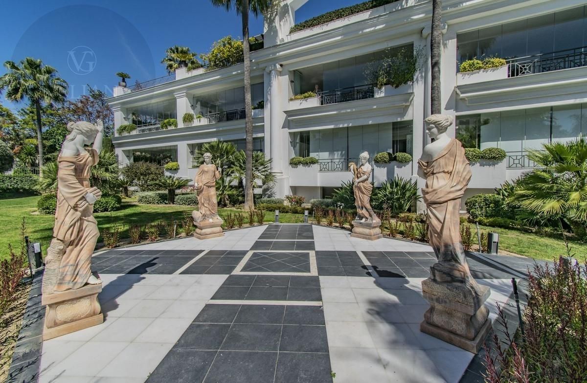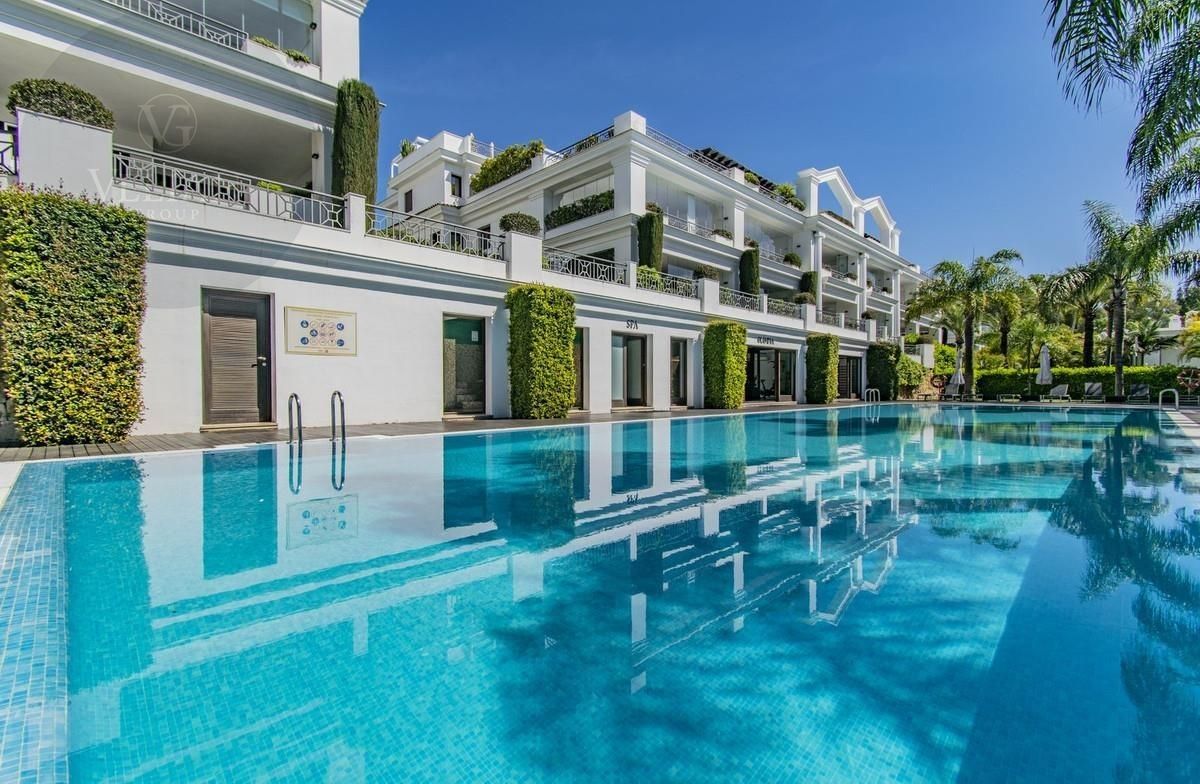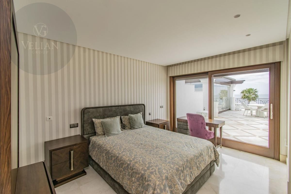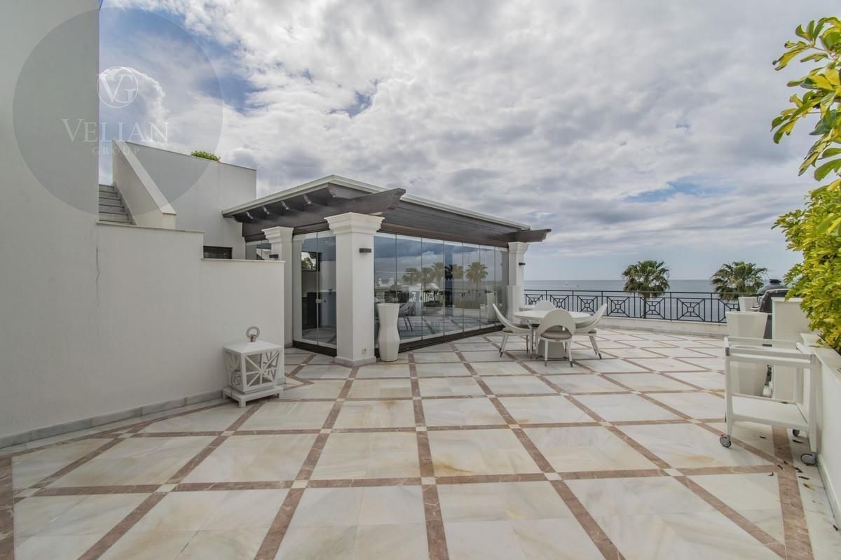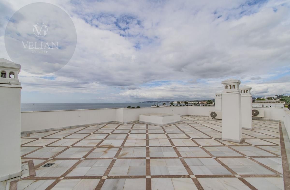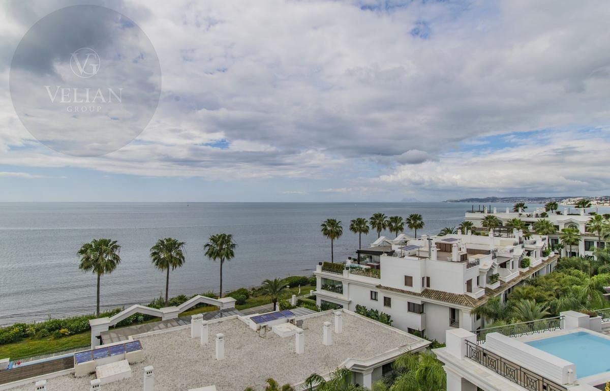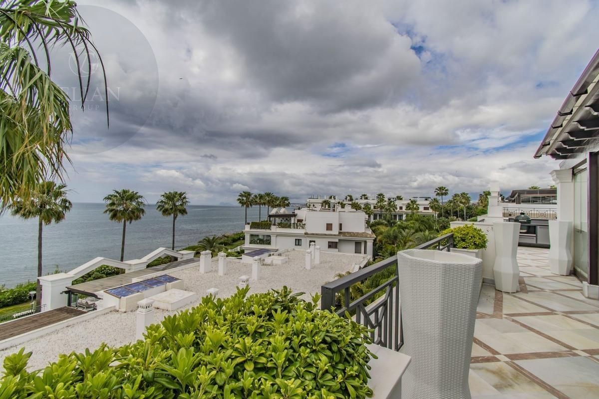 Espectacular propiedad de lujo, con enormes terrazas e impresionantes vistas al mar con una ubicación privilegiada en primera línea de playa, en Estepona a sólo unos minutos del puerto y rodeada de todo tipo de servicios.