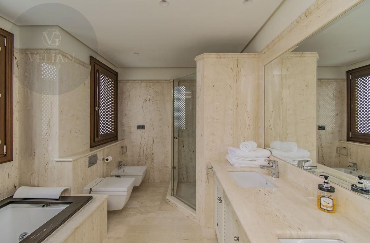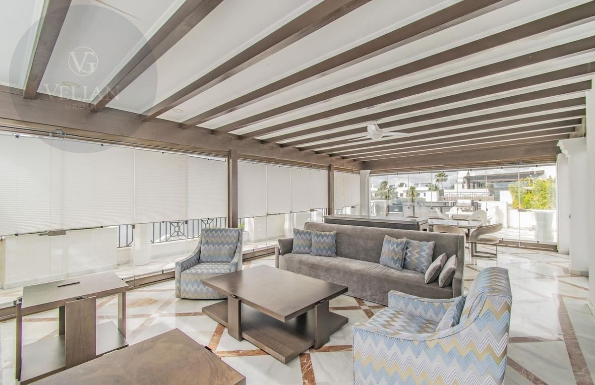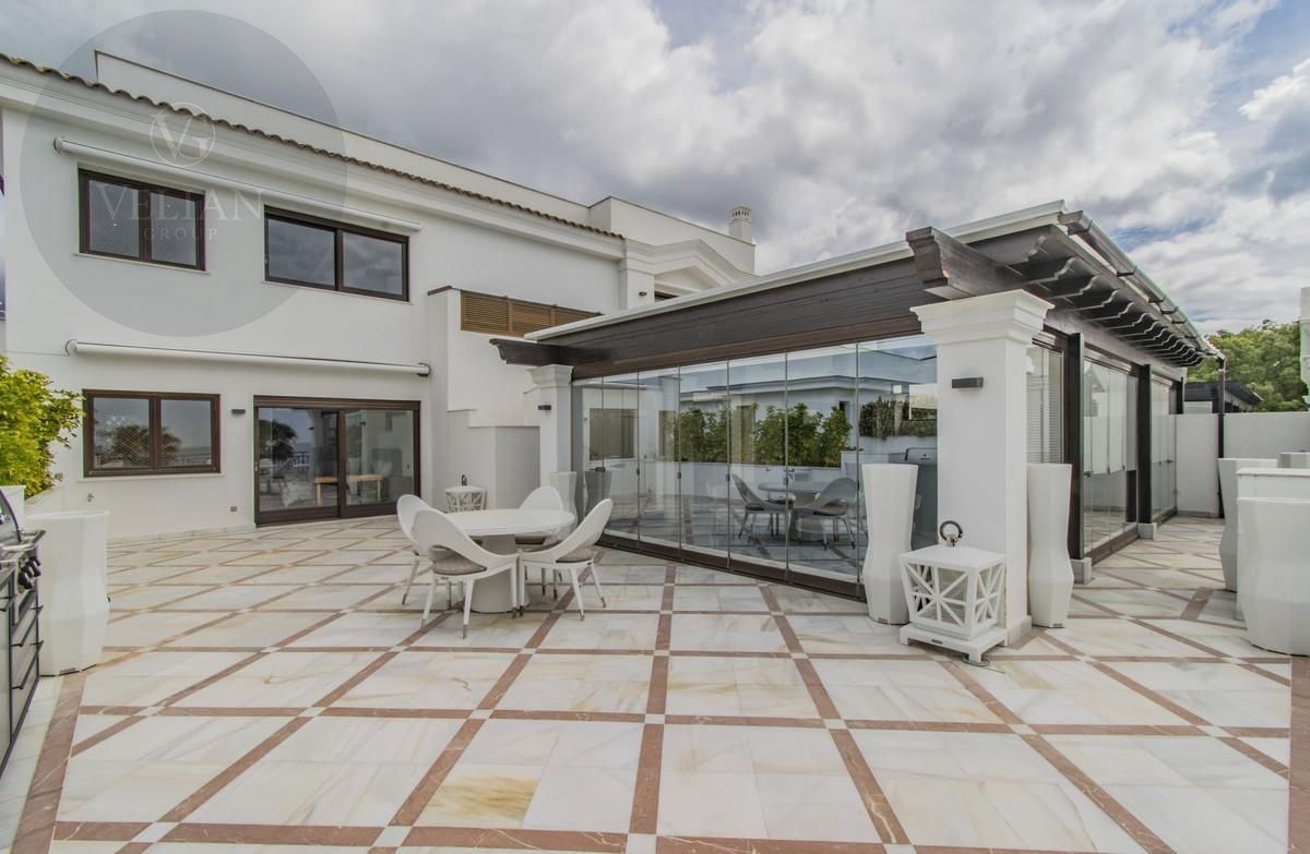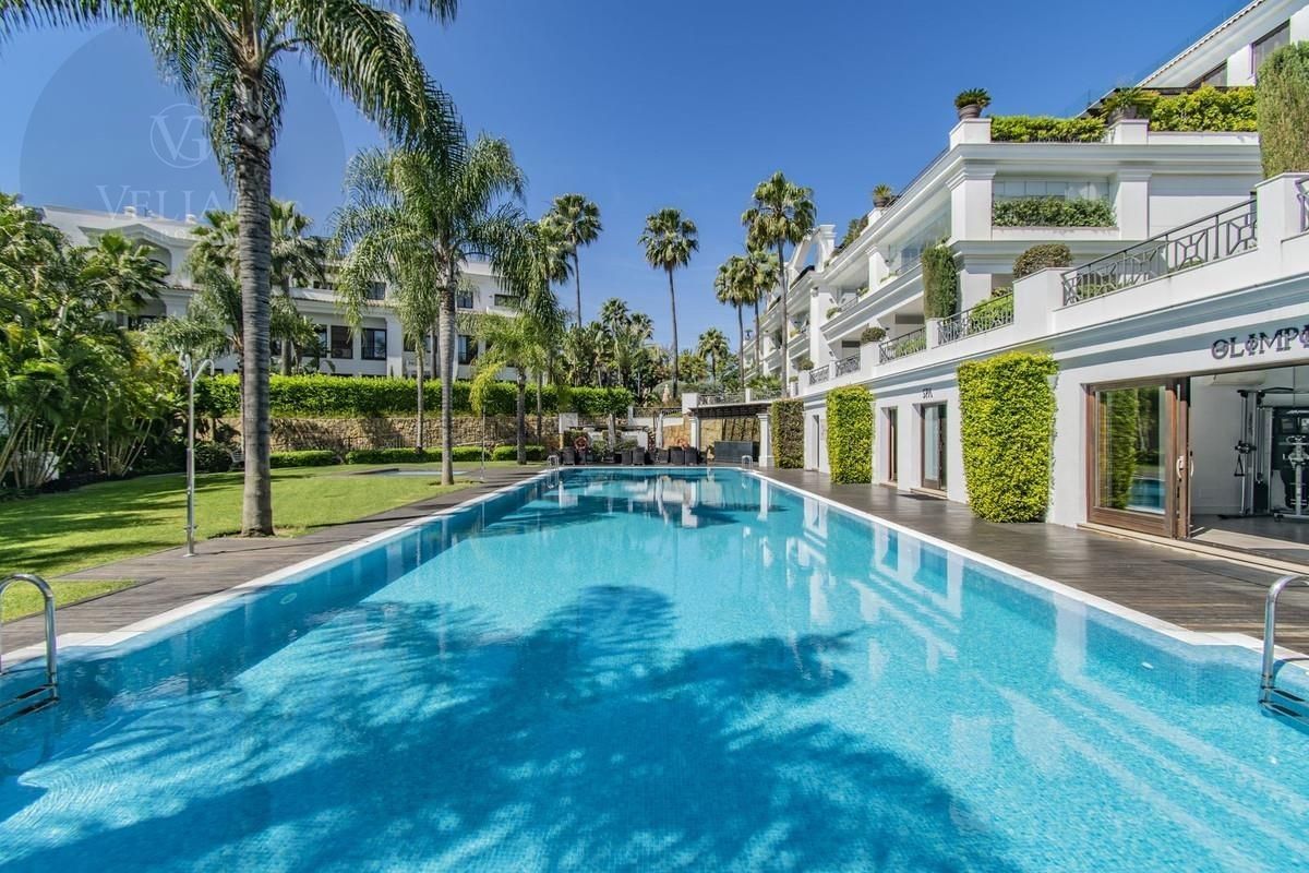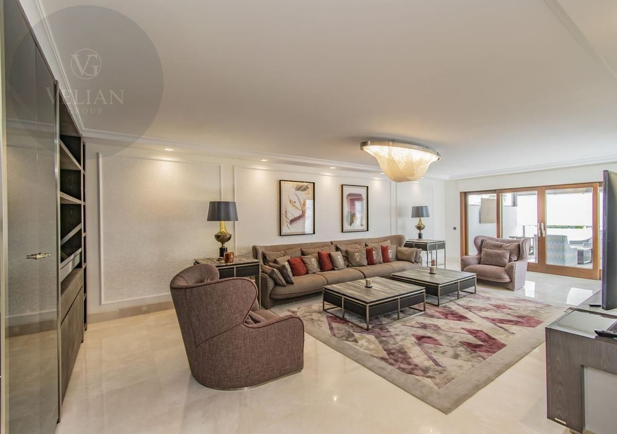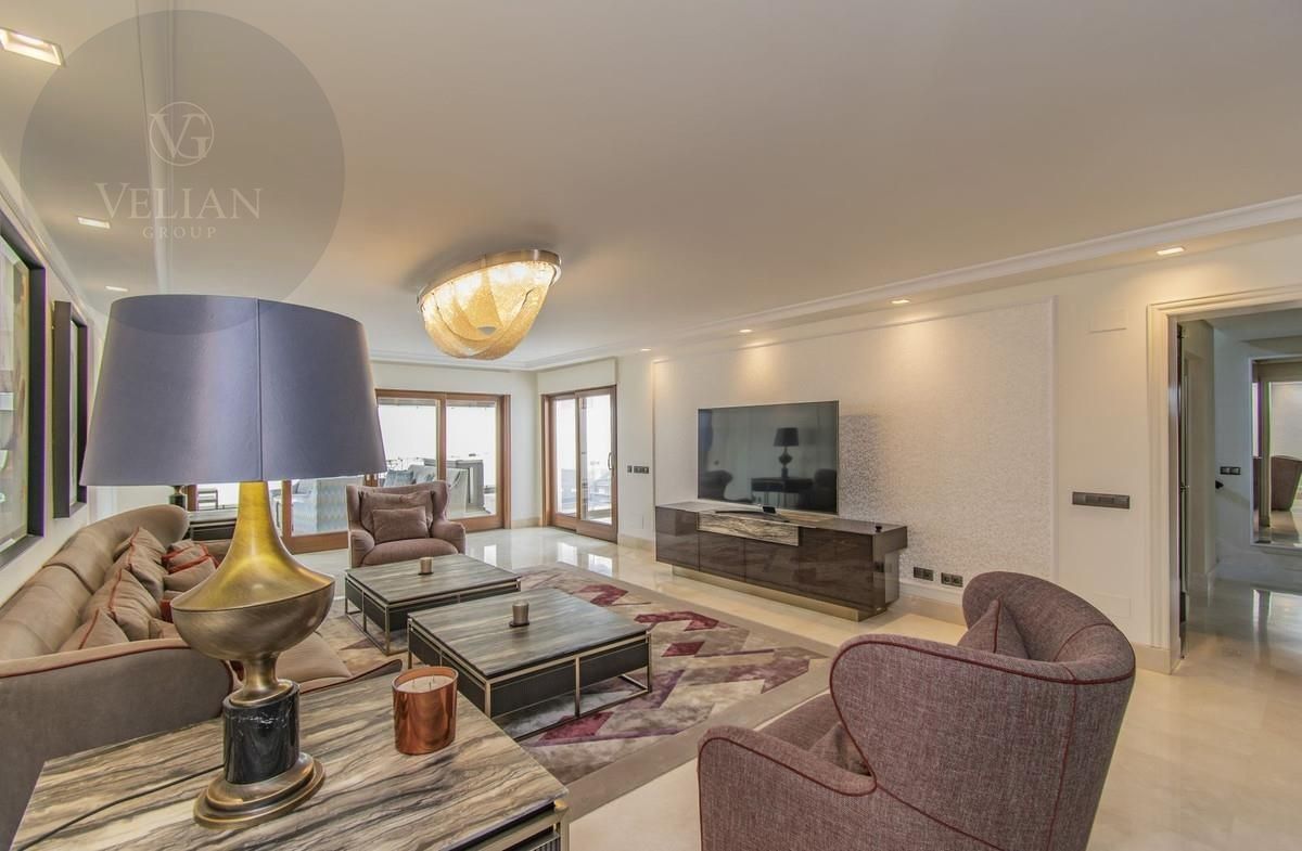 Espectacular propiedad de lujo, con enormes terrazas e impresionantes vistas al mar con una ubicación privilegiada en primera línea de playa, en Estepona a sólo unos minutos del puerto y rodeada de todo tipo de servicios.