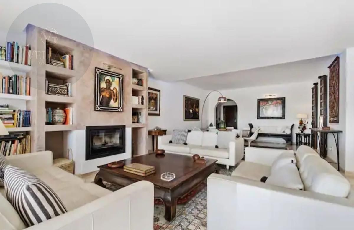Amplio y luminoso salón con chimenea y cocina americana totalmente equipada. Se abre a una gran terraza de 40 m² orientada al suroeste, con vistas relajantes a la naturaleza y la Sierra Bermeja.