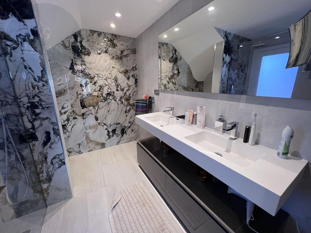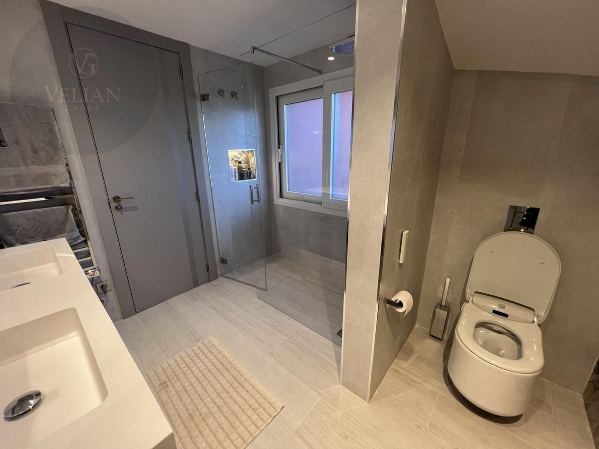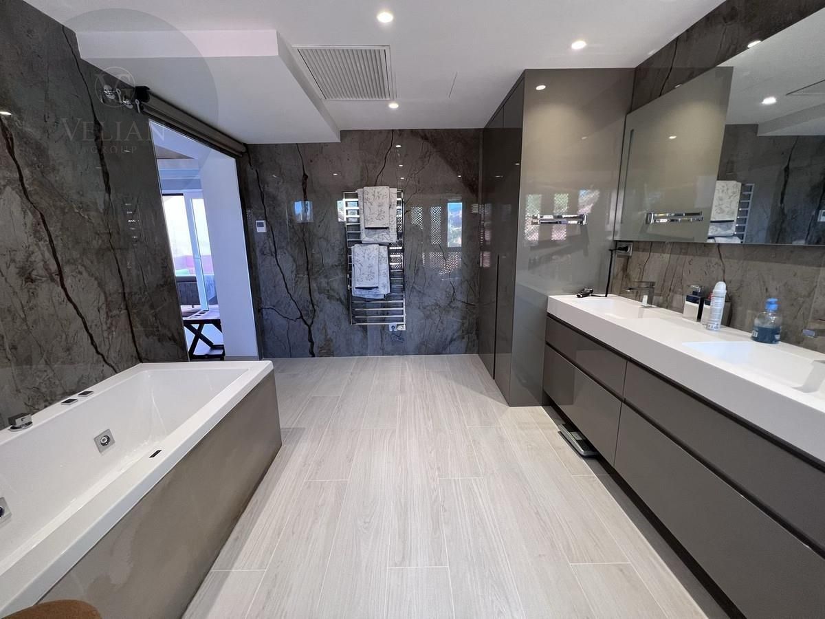 El elegante ático de 3 dormitorios y 3 baños está orientado al sur y tiene vistas al jardín y al mar y ha sido completamente remodelado con los más altos estándares y es una oportunidad única de ser propietario de un lujoso apartamento frente al mar. Las amplias terrazas del apartamento brindan amplias oportunidades para tomar el sol durante todo el día mientras disfruta de impresionantes vistas al mar y prepara una barbacoa.