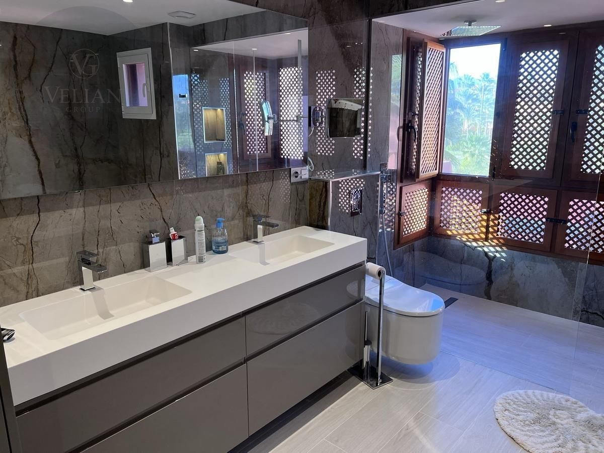 Maravilloso ático dúplex ubicado en uno de los complejos en primera línea de playa más lujosos de la Costa del Sol. El desarrollo de élite frente al mar situado en la Nueva Milla de Oro de Estepona. Situada en una posición privilegiada, las impresionantes vistas del mar Mediterráneo y la cordillera de Gibraltar rodean esta deseable comunidad.