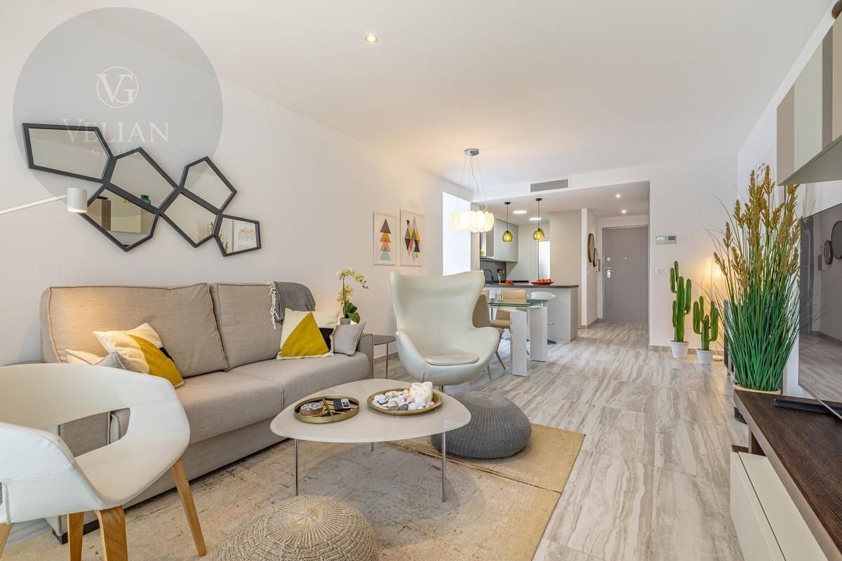 Construido en 2020, el apartamento cuenta con dos amplios dormitorios y dos baños. La cocina moderna está totalmente equipada con electrodomésticos de alta calidad e incluye un práctico lavadero. El salón es luminoso y espacioso, con grandes ventanales y puertas correderas que dan acceso a un amplio balcón, ideal para relajarse o disfrutar con amigos y familiares.