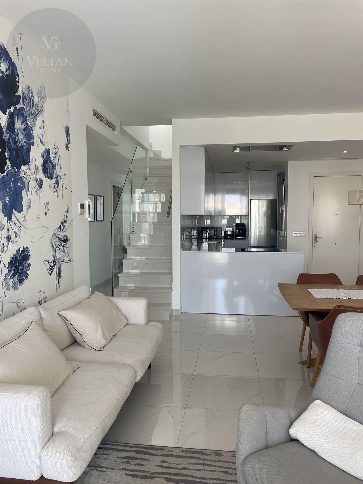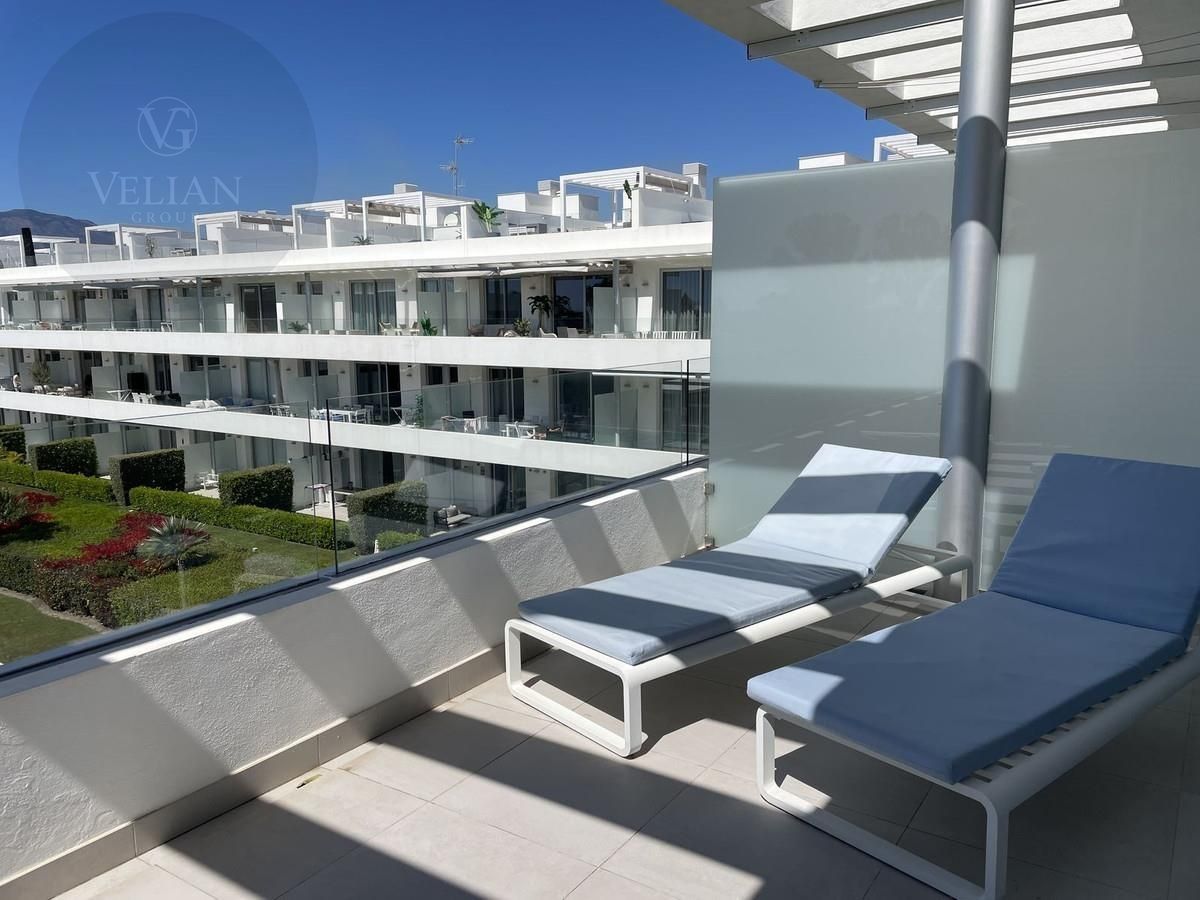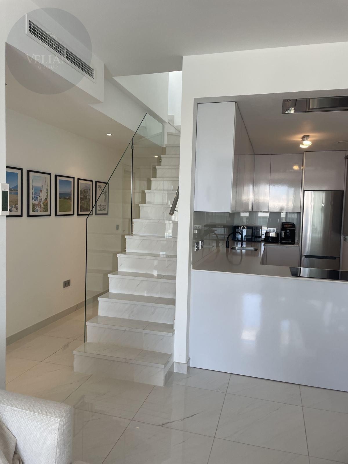 Impresionante ático dúplex moderno de 3 dormitorios en Bel Air, Estepona. La propiedad goza de una ubicación privilegiada, a pocos minutos de la playa y de todos los servicios.