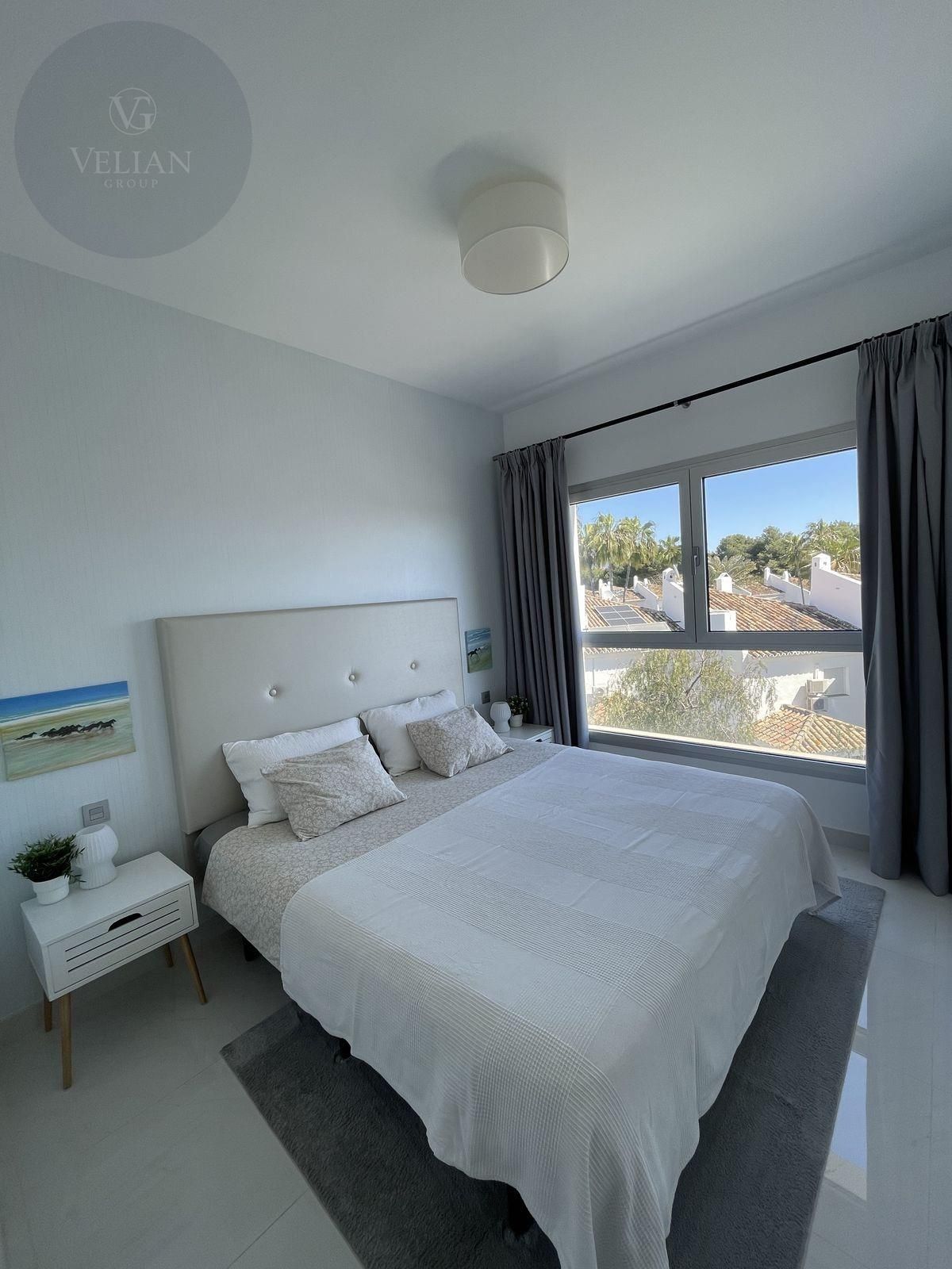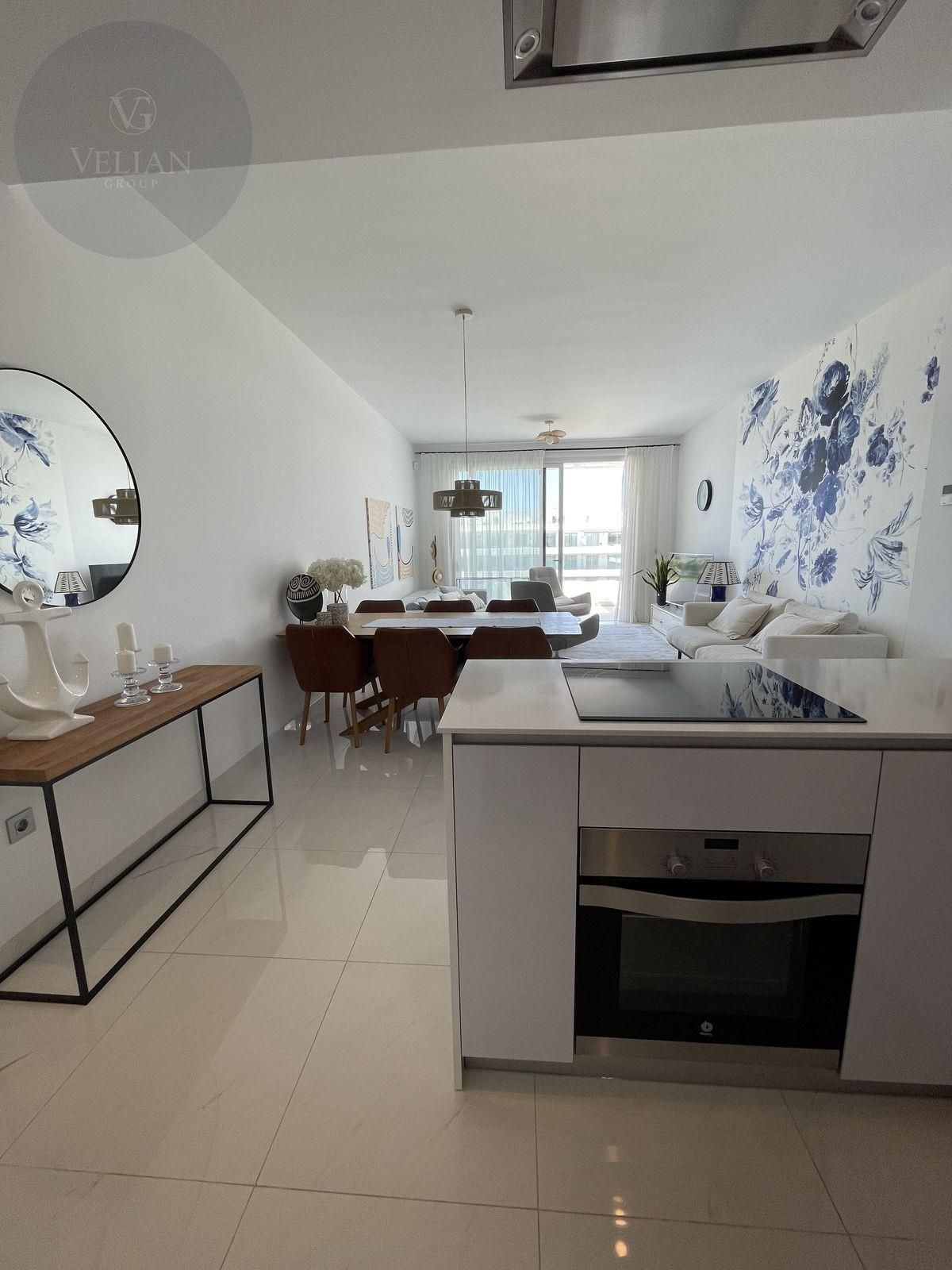 El espacioso apartamento cuenta con 3 dormitorios, 2 baños, salón-cocina abierta y una bonitas terrazas. En la planta superior encontramos un impresionante solárium con magníficas vistas.