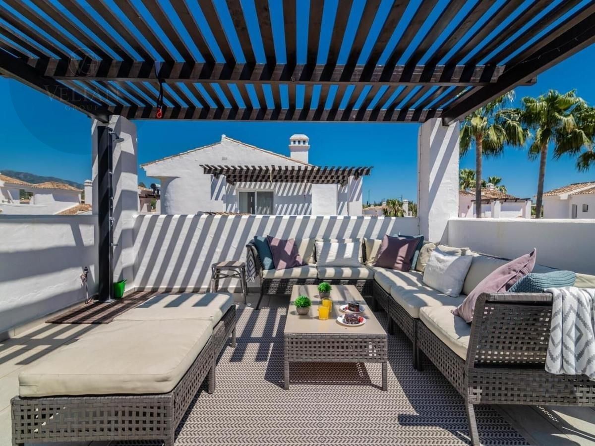 En la planta superior, le recibe la magnífica terraza en la azotea, ¡un verdadero punto culminante! Este espacio cuenta con una acogedora ducha exterior y una zona de salón que ofrece una vista inigualable de la icónica montaña de La Concha, el brillante área de la piscina y los bien cuidados jardines. Este es el lugar perfecto para relajarse al sol o disfrutar de una comida en un entorno maravilloso.