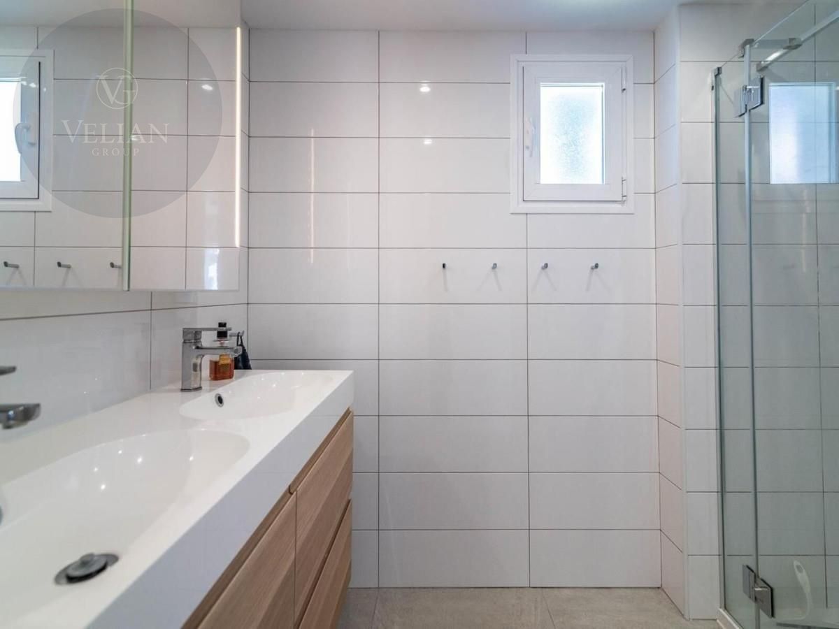 El ático se encuentra en la segunda planta de una comunidad cerrada y bien mantenida, sin ascensor, pero con una excelente distribución que se extiende a lo largo de dos plantas. En el nivel de entrada, encontrará dos luminosos y espaciosos dormitorios, así como un baño elegante y amplio con ducha. La cocina de concepto abierto está completamente equipada y se conecta con el espacioso salón, que ofrece acceso directo a una de las grandes terrazas orientadas al sur. Aquí podrá disfrutar de los cálidos rayos del sol y de la tranquila atmósfera durante todo el año. Además, dispone de un práctico trastero y una lavandería independiente para mayor comodidad en esta planta.