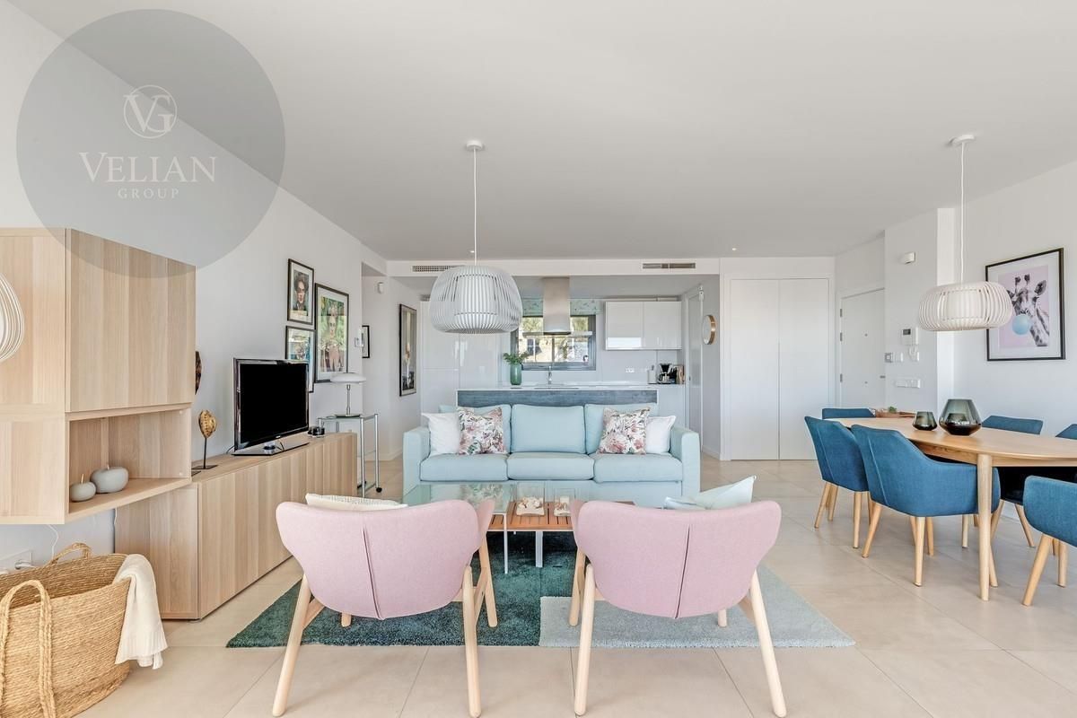 Residents enjoy a large communal pool with sea views, a fully equipped gym, a social club, and landscaped gardens. The project also incorporates smart home technology, underfloor heating, and energy-efficient designs, including pre-installation for electric car chargers