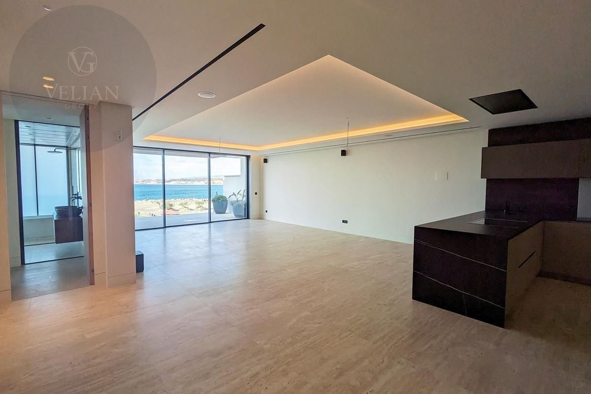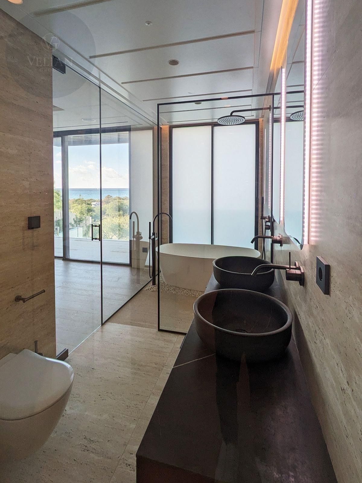 El lujoso apartamento de tres dormitorios en venta en este exclusivo resort frente al mar ofrece un diseño contemporáneo, amplios espacios interiores con vistas al Mediterráneo a través de enormes ventanales y amplias terrazas con piscinas privadas. El uso de materiales de alta calidad y tecnología de última generación hacen de esta promoción una auténtica joya. Todas las viviendas cuentan con al menos dos amplias plazas de garaje y un trastero.
