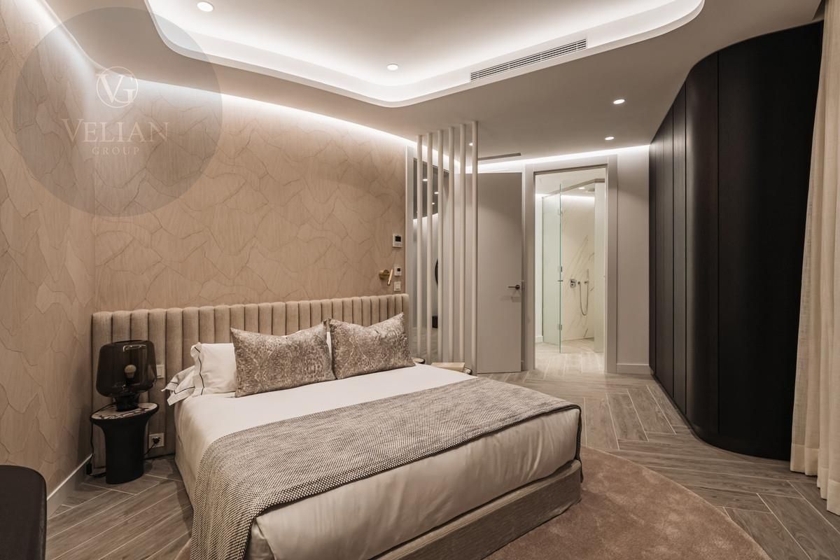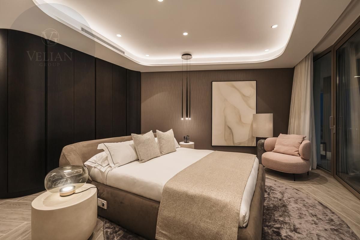 Con una superficie de 663 m² y una parcela privada de 192 m², este apartamento en planta baja cuenta con un diseño de planta abierta, ventanas de suelo a techo y puertas de cristal que ofrecen impresionantes vistas. Incluye una amplia sala de estar, grandes terrazas, una cocina elegante, 3 suites de dormitorios, un aseo de invitados, trastero y 2 plazas de aparcamiento. La terraza de 232 m² es perfecta para disfrutar de las vistas al mar y los atardeceres mediterráneos.