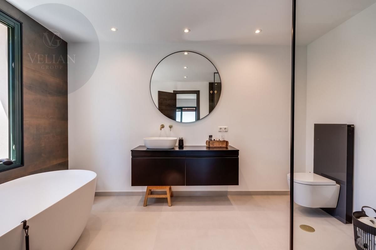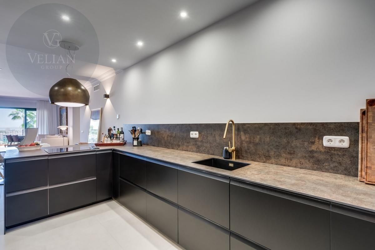 La moderna cocina abierta se conecta con un luminoso salón que da acceso a una soleada terraza, ideal para comer al aire libre o relajarse con vistas espectaculares. La amplia suite principal cuenta con un balcón privado y un baño en suite con bañera exenta. Además, hay dos dormitorios en suite adicionales perfectos para invitados o familia.