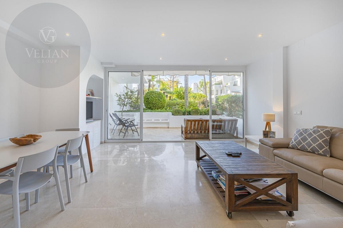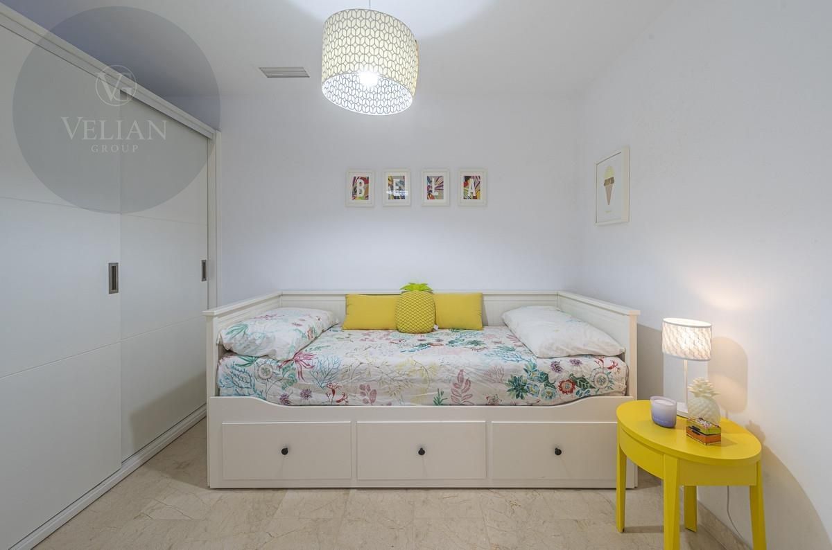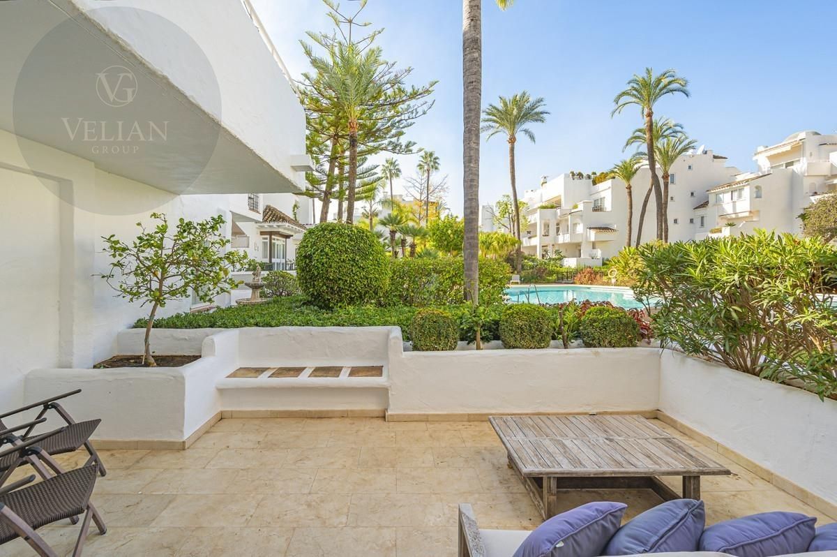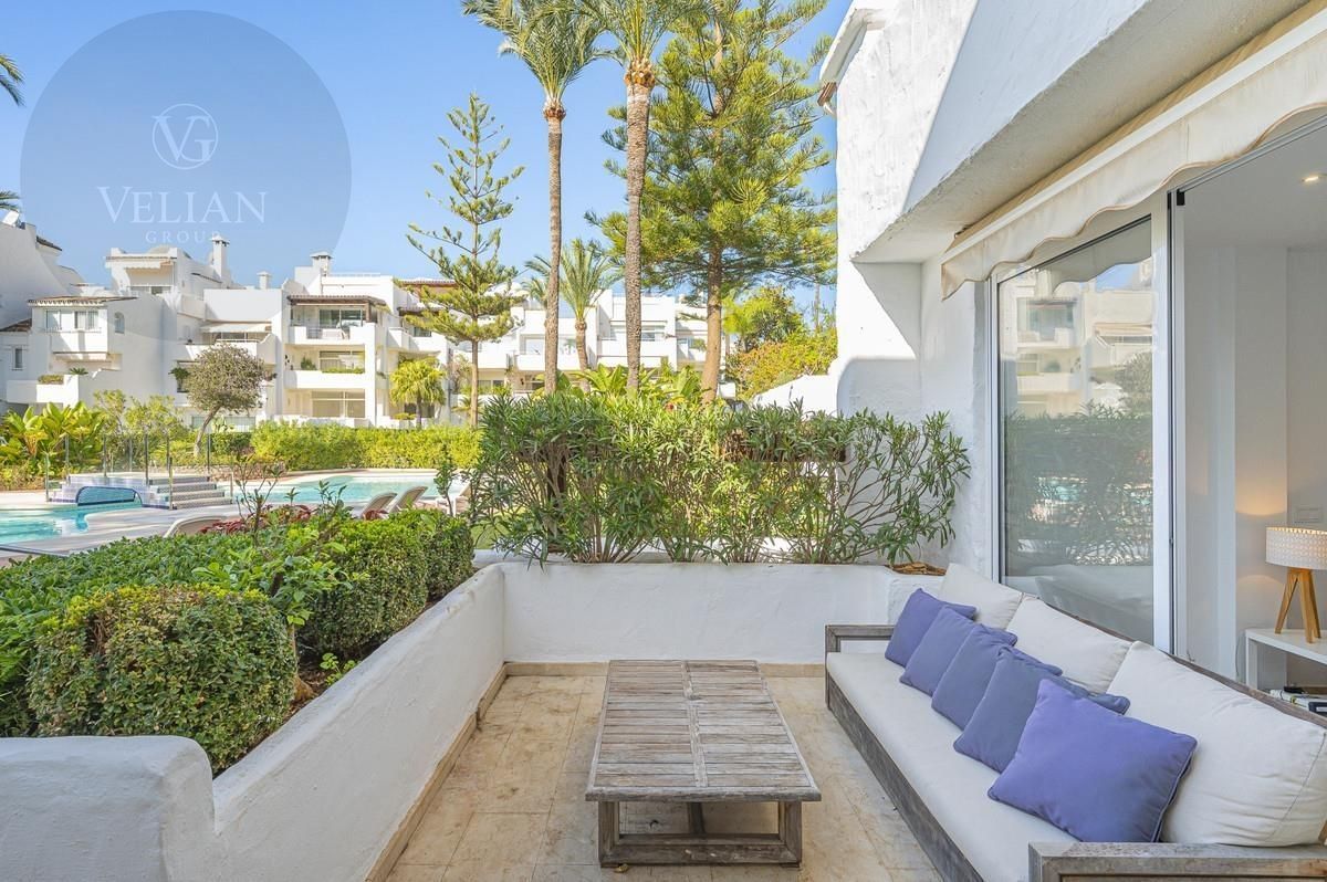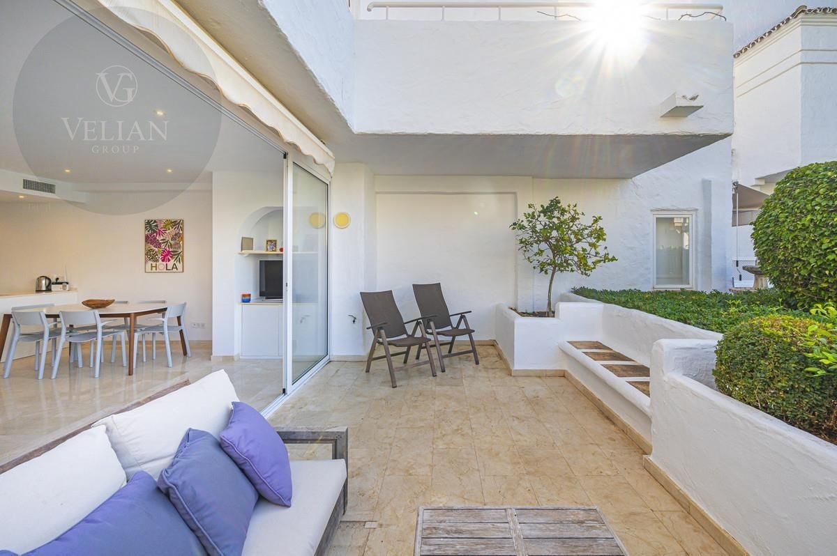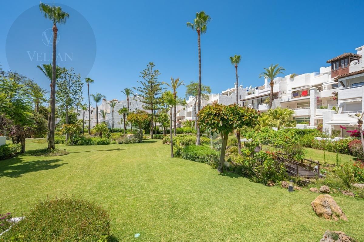 Nuevo en el mercado luminoso apartamento en la cotizada urbanización Alhambra del Mar con perfecta orientación y una bonita terraza. Originalmente tenía un solo dormitorio pero se le ha añadido un segundo pequeño dormitorio. El apartamento ha sido parcialmente reformado y disfruta de estupendas vistas a los exuberantes jardines y fuentes de Alhambra del Mar.