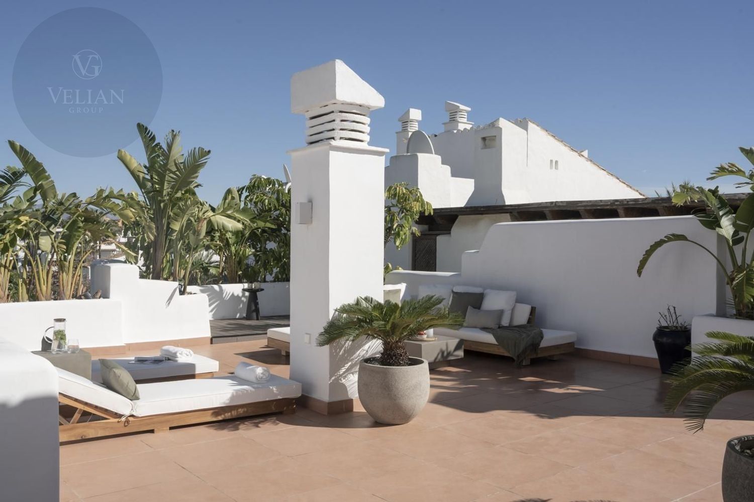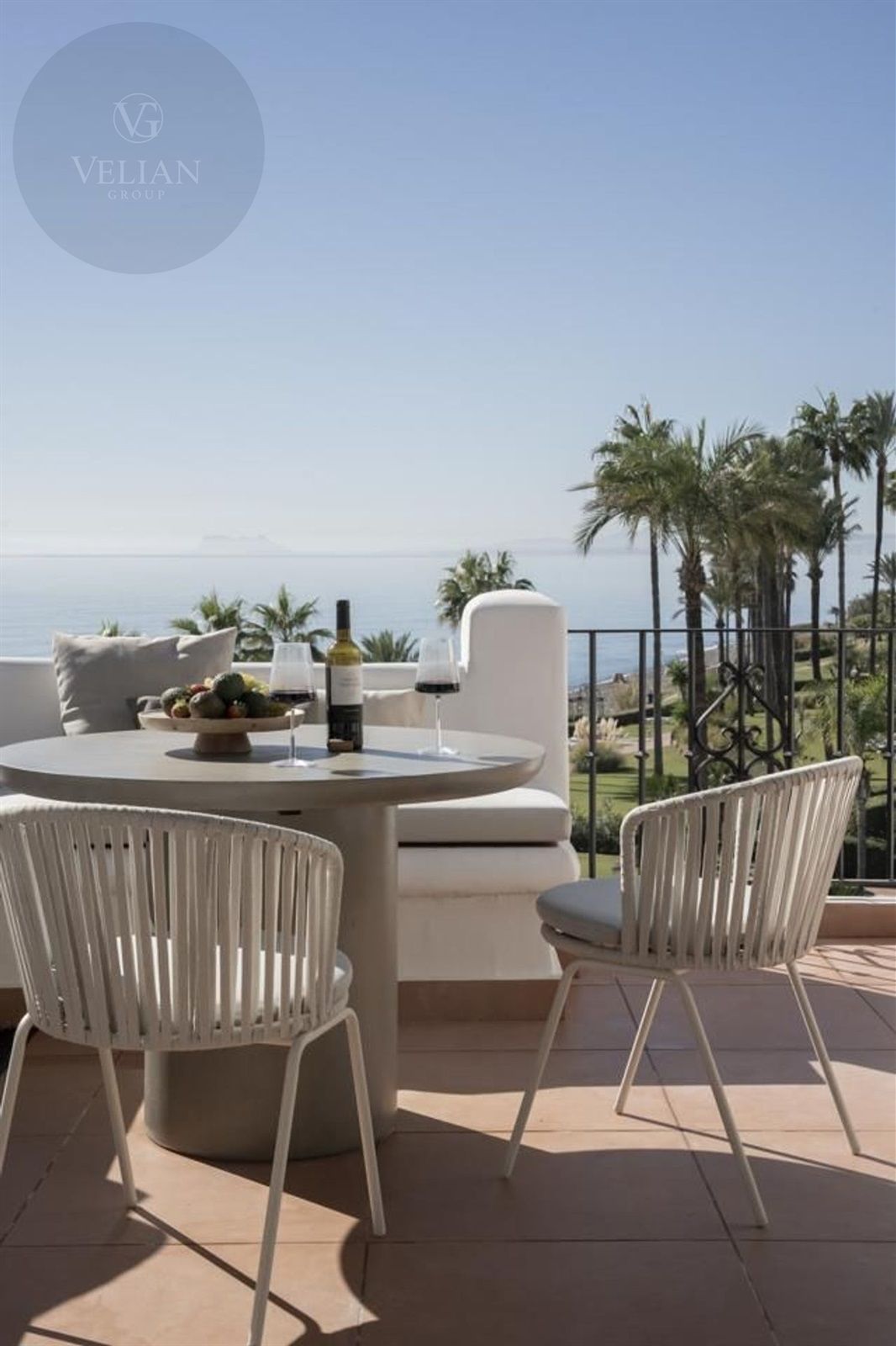 Este magnífico ático de lujo está situado en uno de los desarrollos de primera línea de playa más atractivos de la Costa del Sol, ofreciendo un oasis de tranquilidad y a la vez una ubicación ideal, a solo unos pasos de tiendas, restaurantes y el encantador casco antiguo de Estepona.El apartamento ha sido completamente renovado con los más altos estándares, presentando un diseño de planta abierta que maximiza la luz natural y el espacio. Dispone de 2 acogedores dormitorios equipados con armarios empotrados y 2 elegantes baños en suite, todos ellos con calefacción por suelo radiante, además de un práctico aseo para invitados. La cocina, separada del área de estar por un panel de madera a medida, cuenta con una televisión de pantalla plana giratoria, proporcionando un toque moderno y funcional.Con su orientación suroeste y amplias ventanas de vidrio, el ático se inunda de luz natural y ofrece impresionantes vistas al mar desde ambos niveles. En la planta superior, una espaciosa terraza en la azotea se convierte en el lugar perfecto para relajarse, con una cocina exterior totalmente equipada, barbacoa, 2 duchas al aire libre, área de comedor cubierta y un solárium ideal para disfrutar del sol.Este prestigioso complejo residencial no solo cuenta con acceso directo a la playa y al paseo marítimo, sino que también ofrece una serie de lujosas comodidades, incluyendo 7 piscinas (una de ellas climatizada), galardonados jardines tropicales, 3 restaurantes, un gimnasio, seguridad 24 horas, 3 pistas de pádel, 5 pistas de tenis y un pequeño campo de fútbol. Este resort es el destino vacacional ideal, con un excelente acceso a la carretera principal que conecta Estepona y Marbella. ¡No pierdas la oportunidad de vivir en este paraíso!
