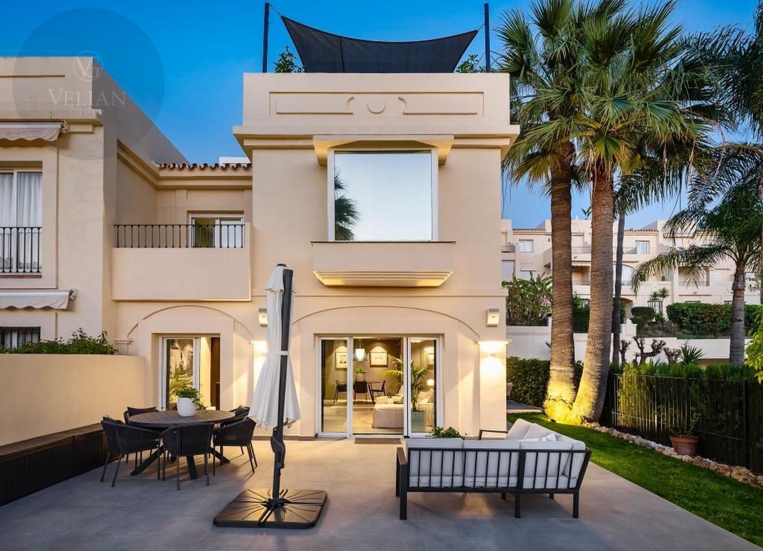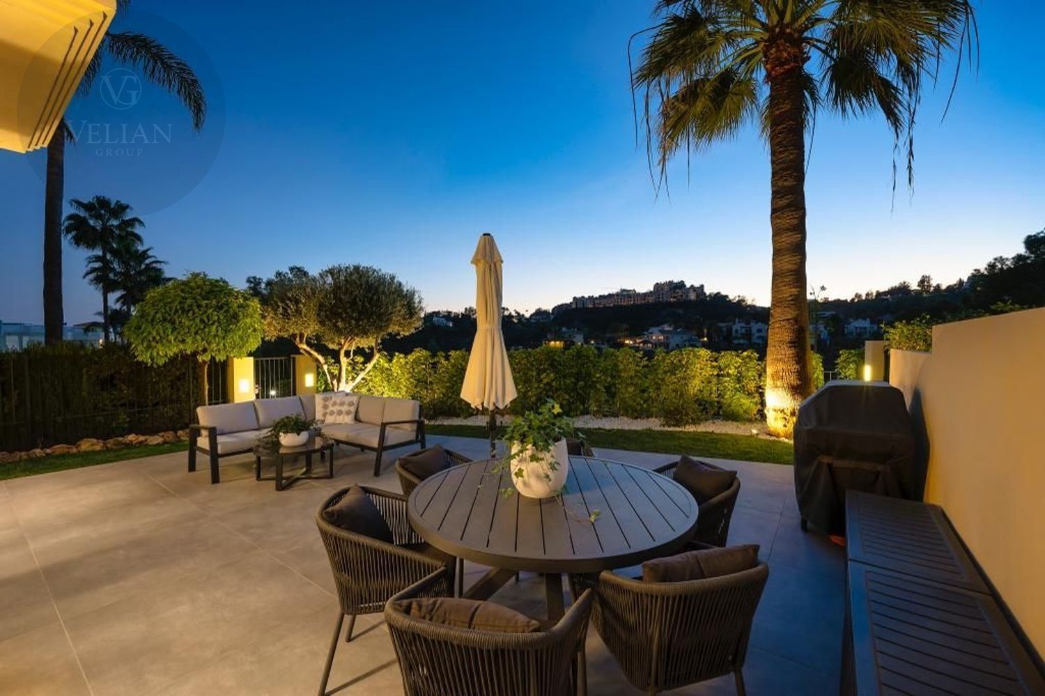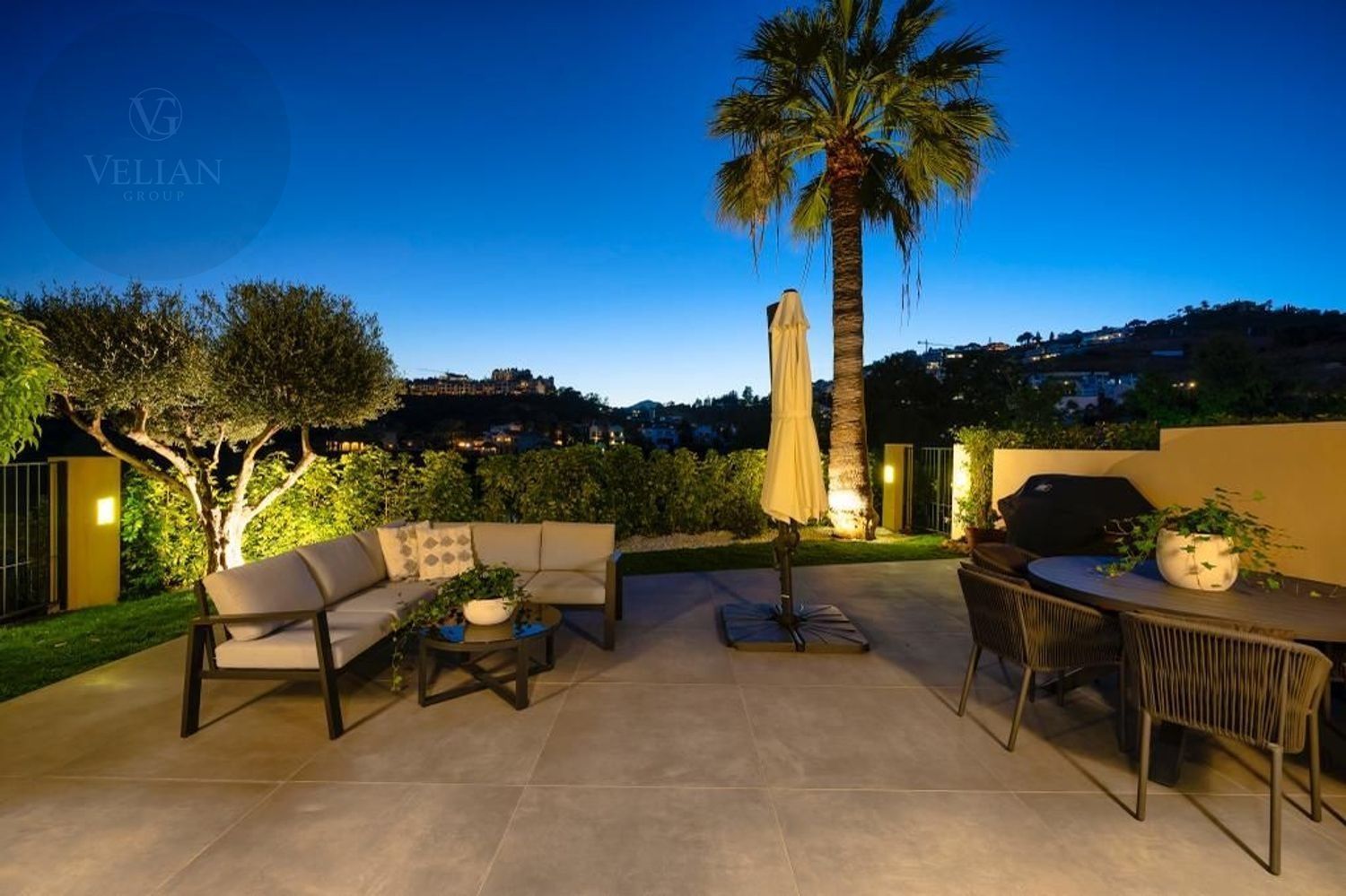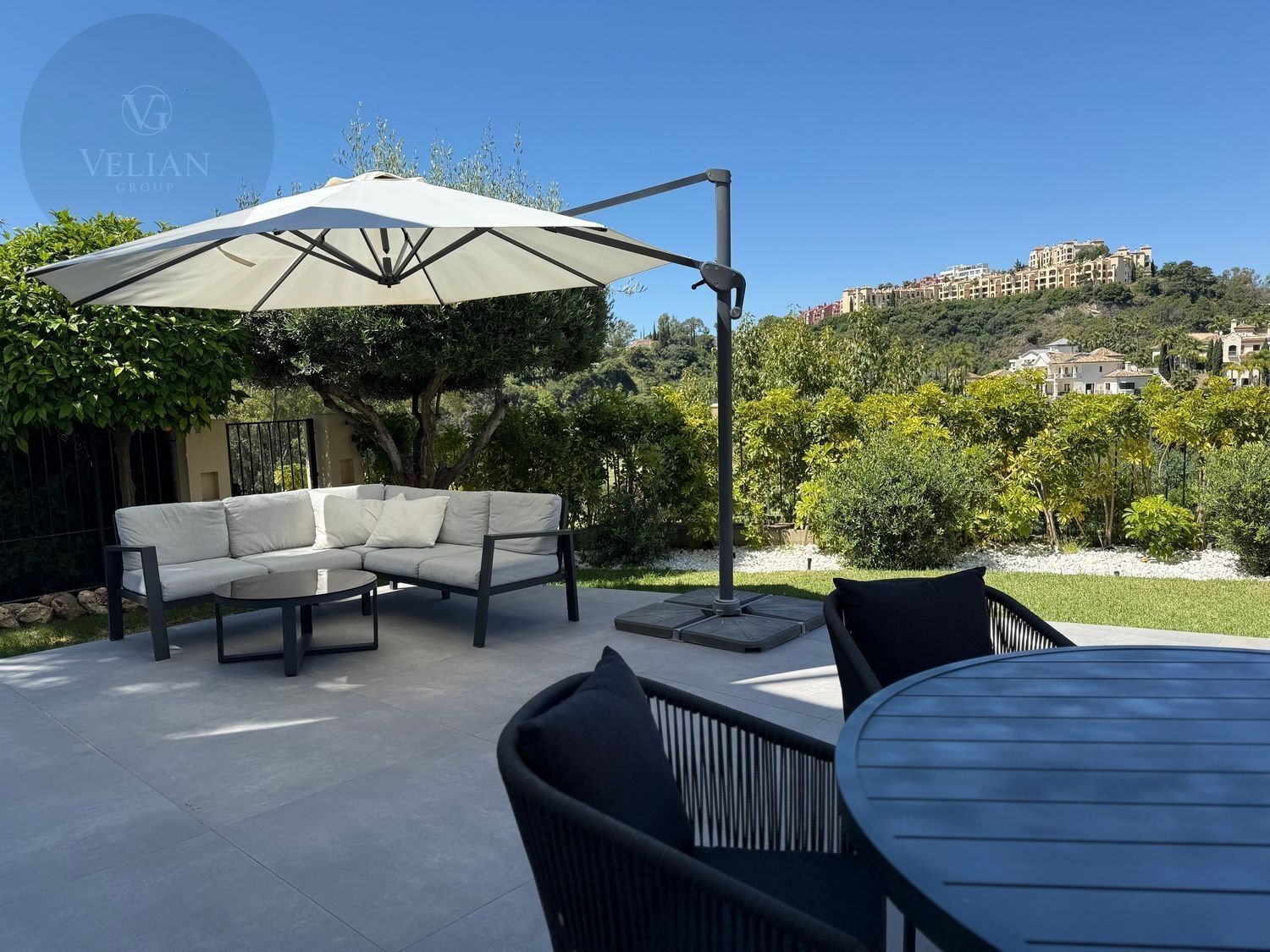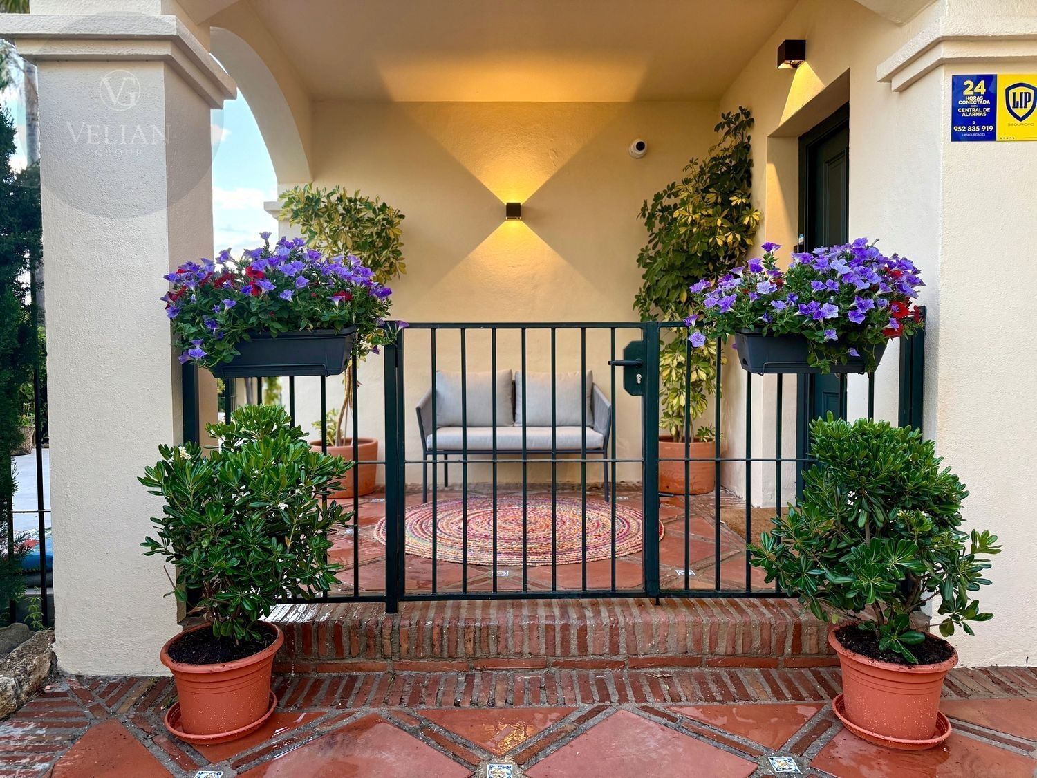 "Una casa hermosa y elegante en una zona segura y tranquila de La Quinta con magníficas vistas de las montañas, el golf y el mar. Esta espaciosa casa ha sido totalmente renovada y equipada con todo lo necesario. Totalmente amueblado y hecho con buen gusto con un diseño contemporáneo y equipo de música. Está situado dentro de una comunidad cerrada con cuatro piscinas comunitarias y vigilado por cámaras de seguridad.El nivel de entrada cuenta con un plan de piso abierto que tienen una cocina conectada de forma natural, acceso directo a la terraza, jardín privado y puertas de cristal que proporcionan mucha luz natural. El salón se ha incorporado creando una gran zona de entretenimiento. En esta planta, también encontramos baño de invitados y cocina totalmente equipada con electrodomésticos modernos.Hay tres dormitorios, el principal con baño en suite. Dos de los dormitorios tienen su propia terraza con vistas panorámicas. En la parte superior accedemos a la magnífica azotea de 80m2 con una piscina de inmersión y vistas panorámicas de las montañas, el campo de golf y el mar.