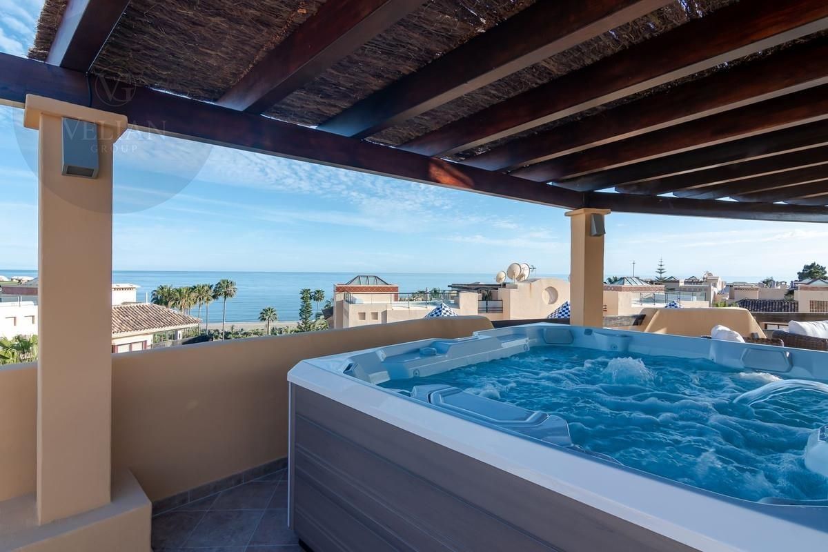 A solo 100 metros de las arenas doradas del Mediterráneo, este excepcional ático ofrece una combinación única de lujo, confort y vistas incomparables en la codiciada urbanización de Costalita, situada en la Nueva Milla de Oro entre Marbella y Estepona.