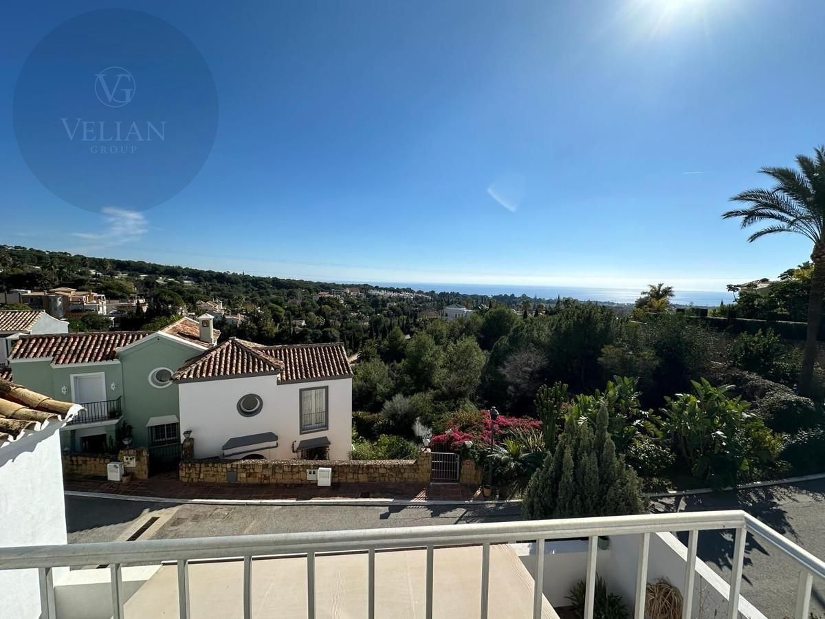 Enclavada en la prestigiosa Milla de Oro, esta adosada es una verdadera joya con impresionantes vistas panorámicas al mar y a la montaña.