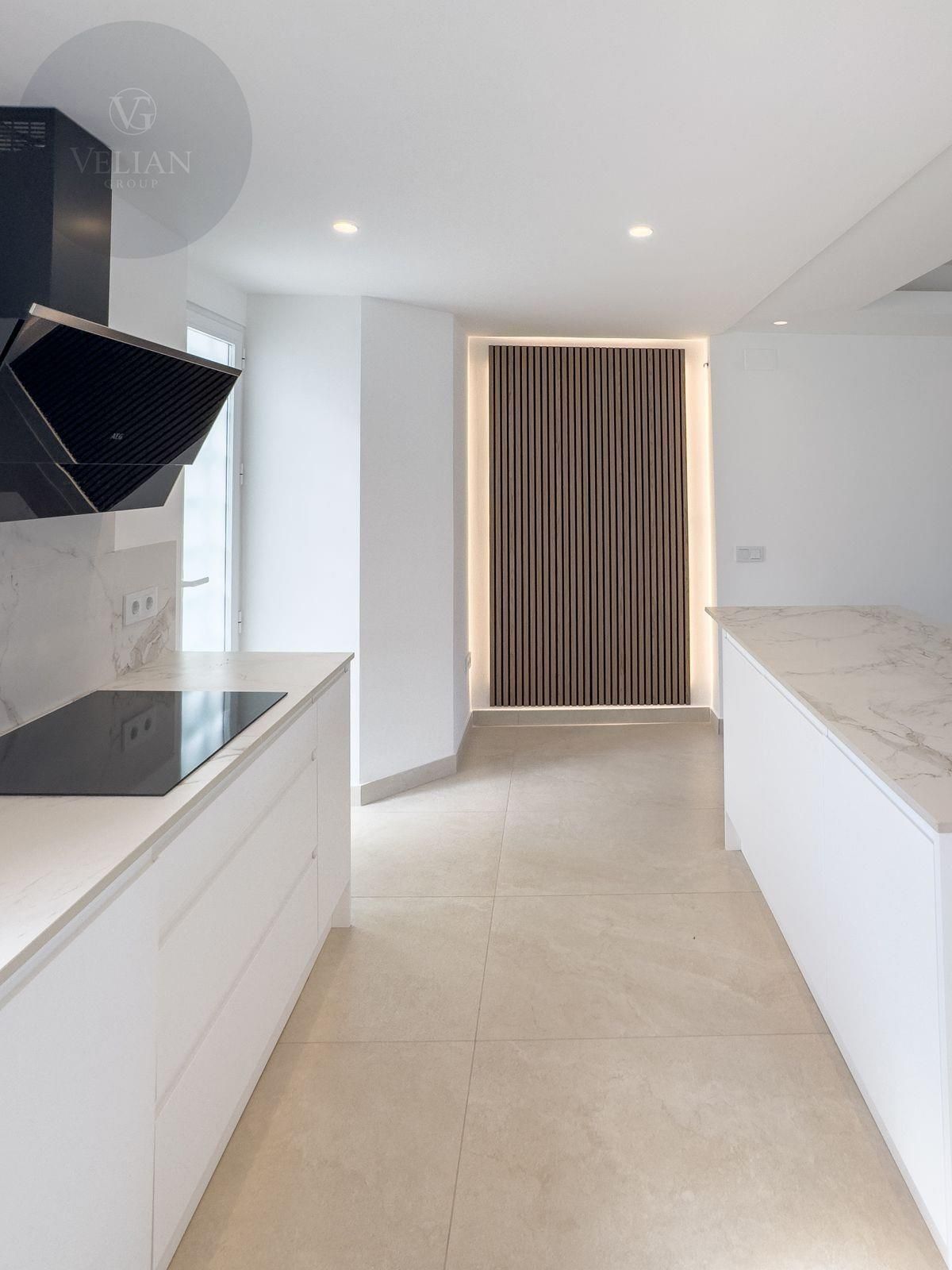 Este ático ha sido exquisitamente reformado contando con numerosos detalles. Se compone de un amplio salón con cocina abierta para aprovechar al máximo el espacio y dar esa sensación de amplitud. Nos encontramos con un pasillo que nos lleva hacia los dos dormitorios. Uno de ellos, el principal, con baño en suite y zona de vestidor. También hay un segundo baño completo.