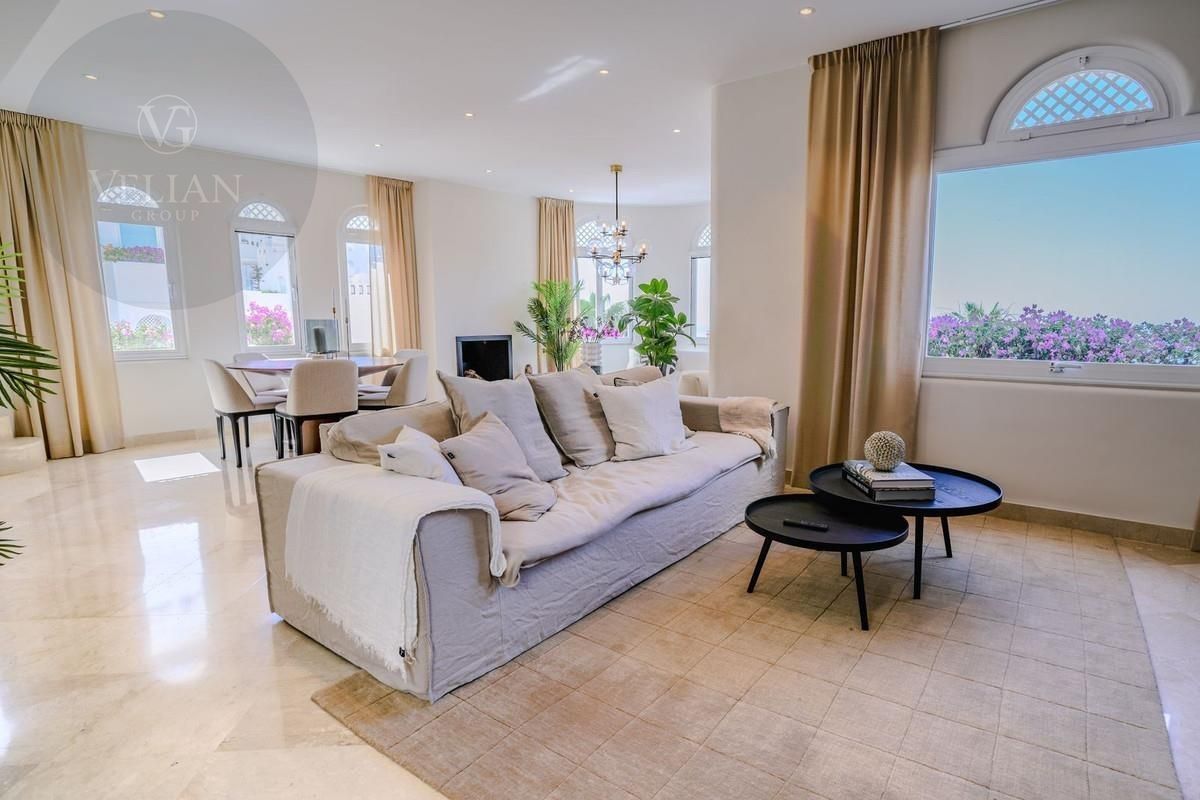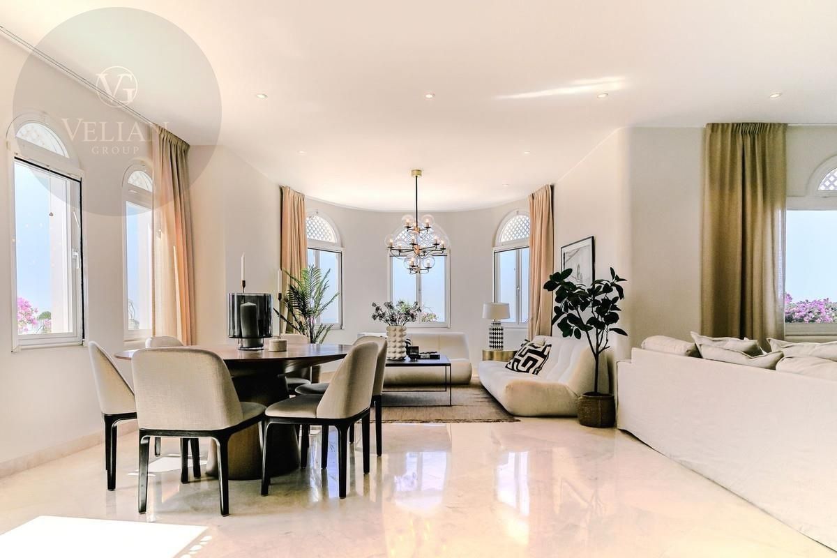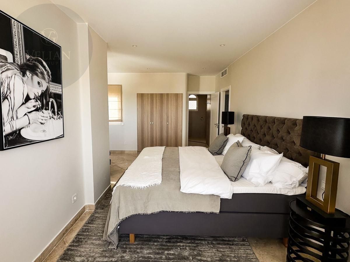 Al entrar en la propiedad, uno es recibido por una cocina de planta abierta que se integra perfectamente con las zonas de estar y comedor, creando un flujo armonioso a lo largo del nivel de entrada. La cocina está totalmente equipada y equipada con los más altos estándares, garantizando una deliciosa experiencia culinaria. El dormitorio principal, junto con otro dormitorio con baño en suite, está situado en este nivel, ofreciendo comodidad y privacidad. El apartamento está totalmente amueblado, con suelos de mármol añadiendo un toque de opulencia al interior.