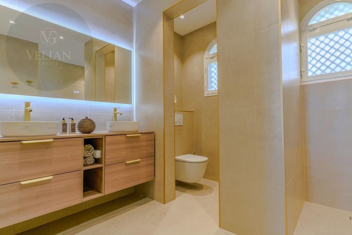 El nivel superior alberga un dormitorio y baño adicionales, junto con una cómoda lavandería. Este nivel abre hasta una magnífica terraza privada, donde se espera una piscina privada y zona de barbacoa, perfecta para acoger reuniones o disfrutar de sesiones tranquilas para tomar el sol. La terraza ofrece impresionantes vistas panorámicas del mar y las montañas, proporcionando un entorno sereno a la vida cotidiana.