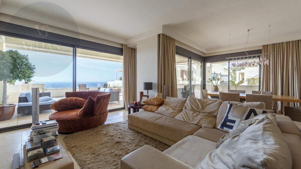 Este impresionante ático tiene una maravillosa cocina americana totalmente equipada con electrodomésticos modernos y de lujo con acceso a una terraza con vistas a un pequeño jardín. Un maravilloso dormitorio principal panorámico en la planta superior con techos altos y vestidor y un baño doble en suite también con vistas al mar y una terraza panorámica con una vista asombrosa del mar Mediterráneo. Los dos dormitorios de invitados comparten un amplio baño con ducha a ras de suelo. Amplio trastero y 1 plaza de aparcamiento en el garaje subterráneo incluido en el precio.