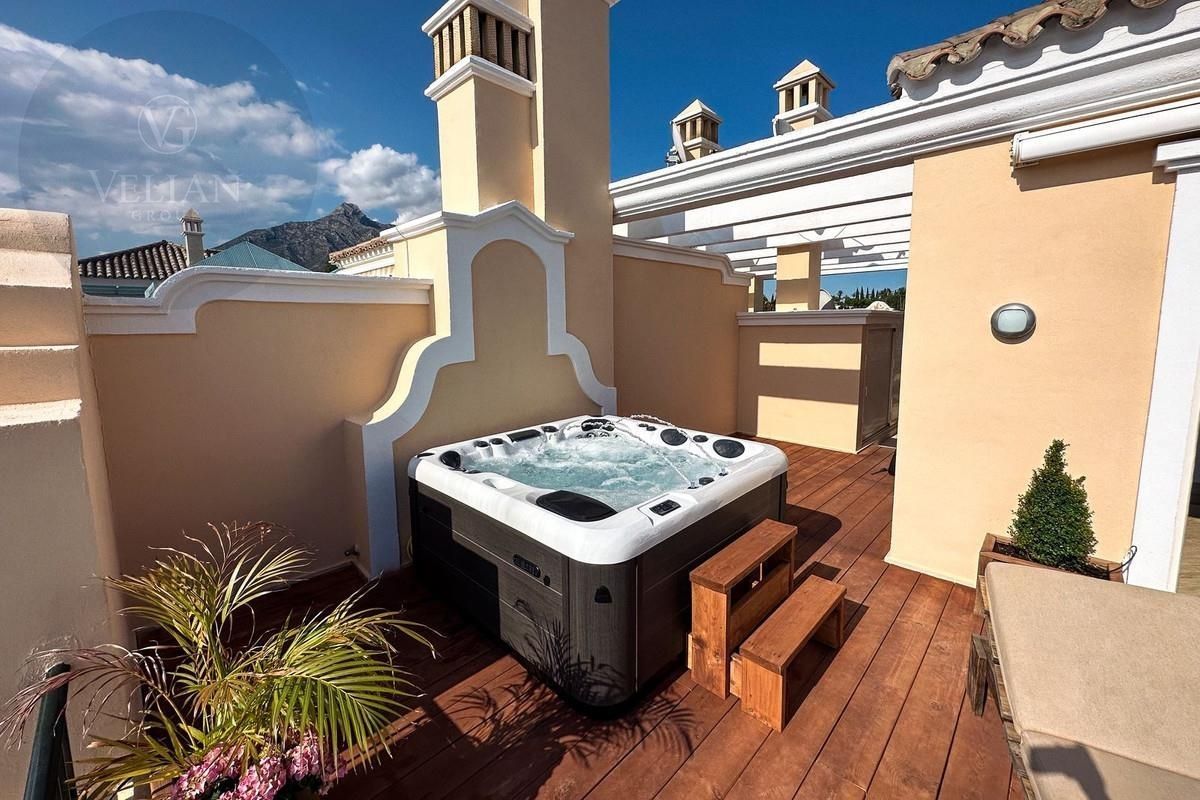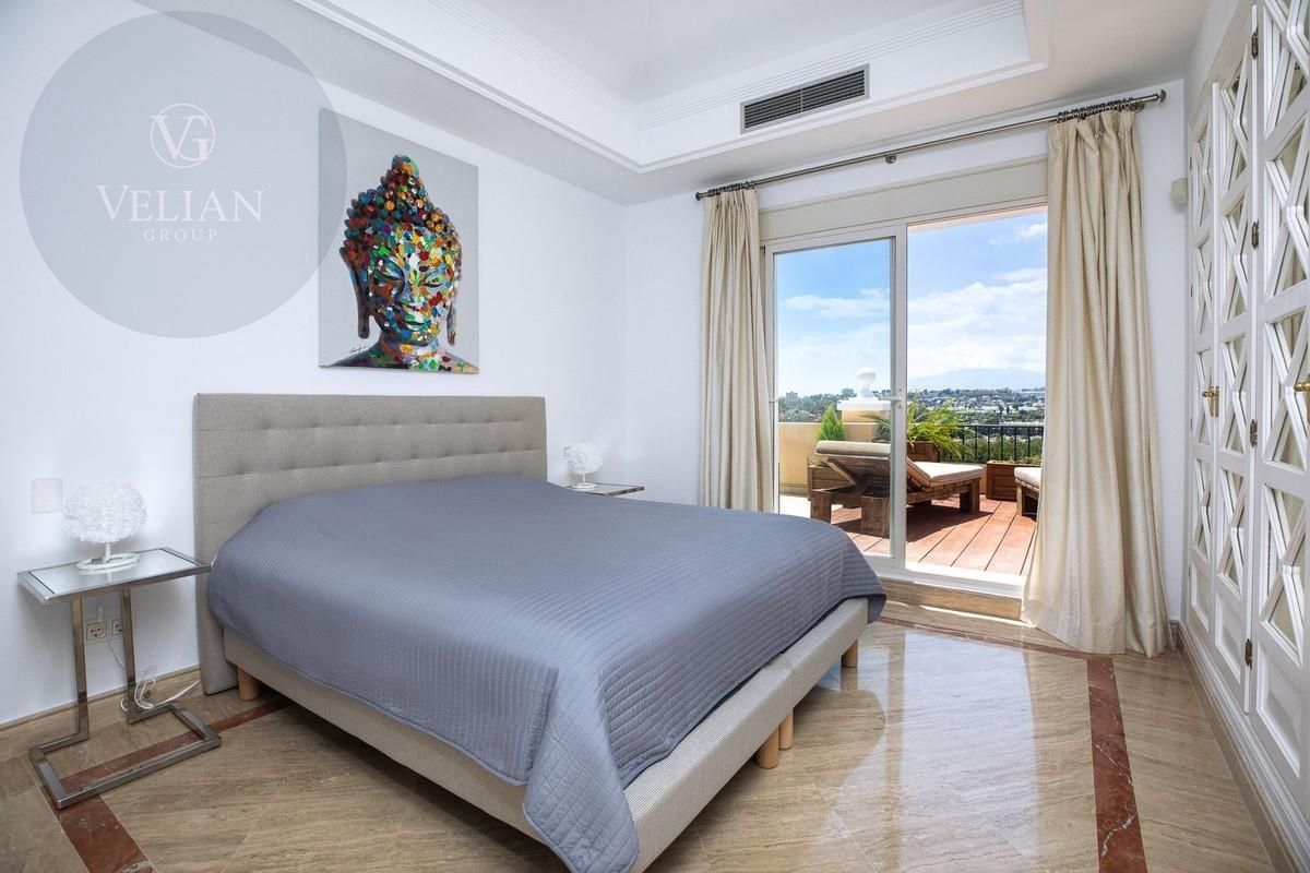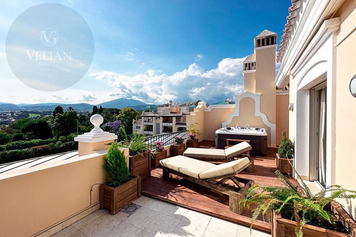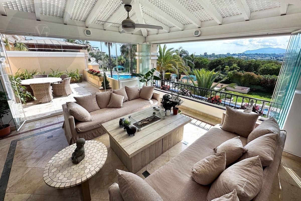 Este Ático de Lujo está ubicado en el corazón de La Milla de Oro, en un complejo cerrado de solo 47 apartamentos, con seguridad las 24 horas y hermosos jardines comunitarios. La propiedad cuenta con amplias estancias, una enorme terraza con jacuzzi y zona de barbacoa nuevos, suelo radiante y un precioso solárium con vistas al mar, todo ello amueblado y decorado con alta calidad y buen gusto.