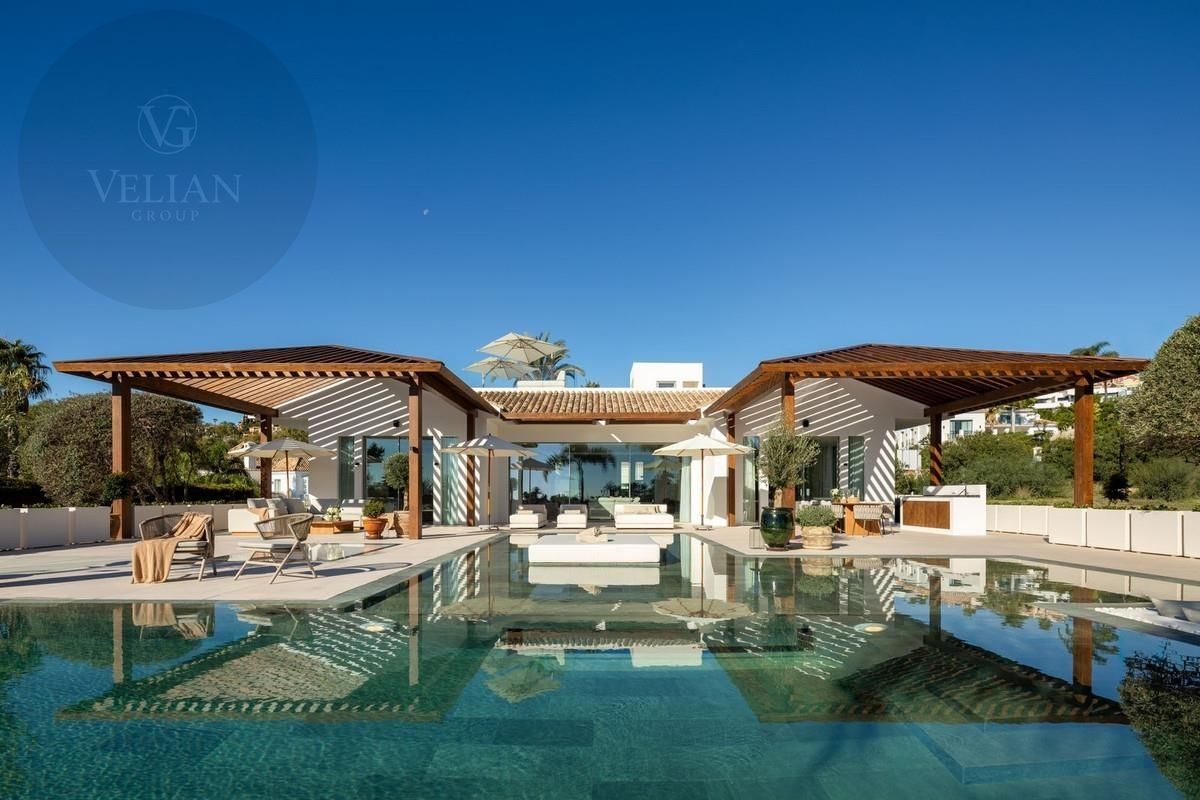 Ubicada en el corazón del prestigioso Valle del Golf de Nueva Andalucía, esta propiedad es un impresionante ejemplo de elegancia mediterránea fusionada con un diseño balinés contemporáneo. Ubicado en una parcela privilegiada en primera línea de golf, ofrece impresionantes vistas del mar Mediterráneo, calles exuberantes y la icónica montaña de La Concha. Combinando a la perfección la sofisticación arquitectónica con el diseño moderno, esta casa ofrece un refugio tranquilo para aquellos que buscan lujo refinado en Marbella.