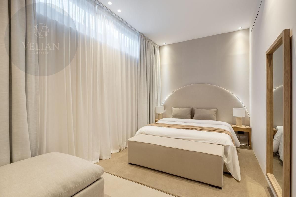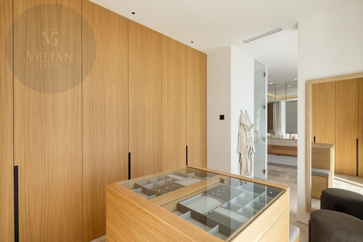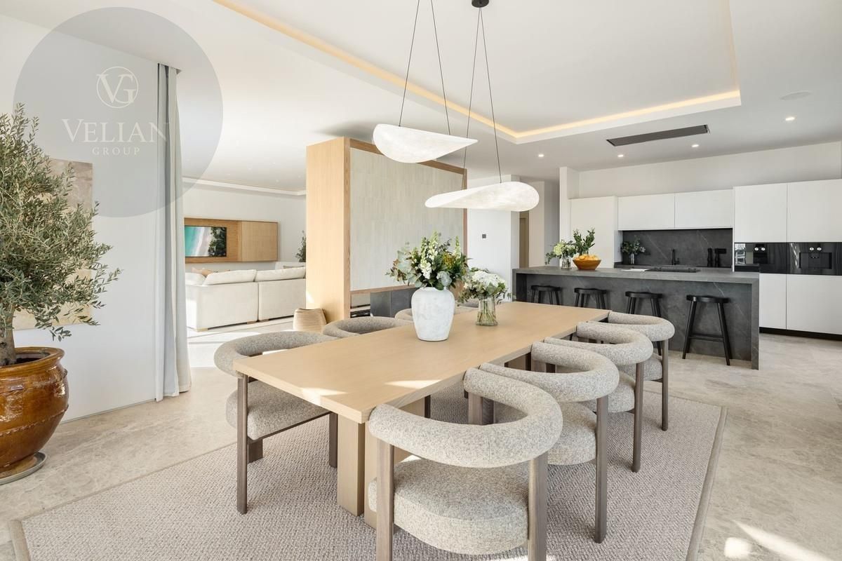 El interior está cuidadosamente diseñado para irradiar calidez y elegancia discreta. Un diseño de planta abierta, combinado con una relajante paleta neutra y abundante luz natural, crea una atmósfera acogedora y espaciosa. La cocina de última generación está equipada con electrodomésticos de primera línea y características funcionales, mientras que las amplias puertas de vidrio conducen a grandes terrazas que desdibujan los límites entre la vida interior y exterior. Con cinco dormitorios exquisitamente diseñados, la suite principal destaca por su terraza privada, vestidor y lujoso baño en suite.