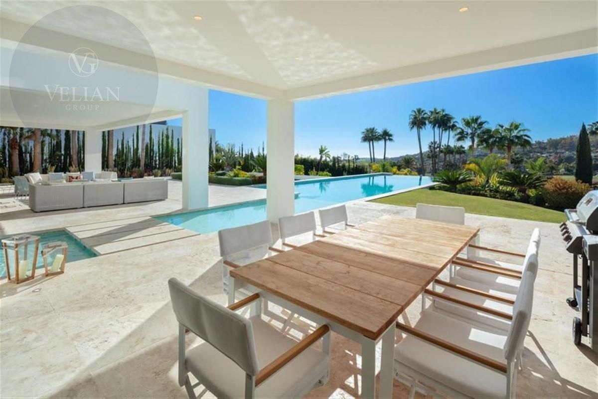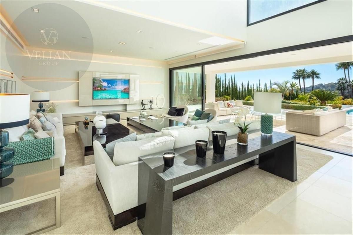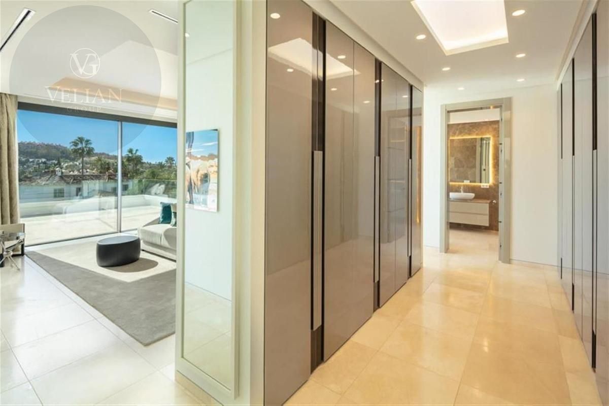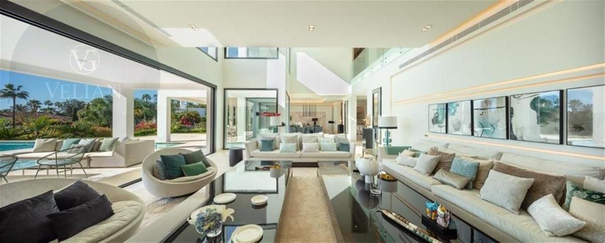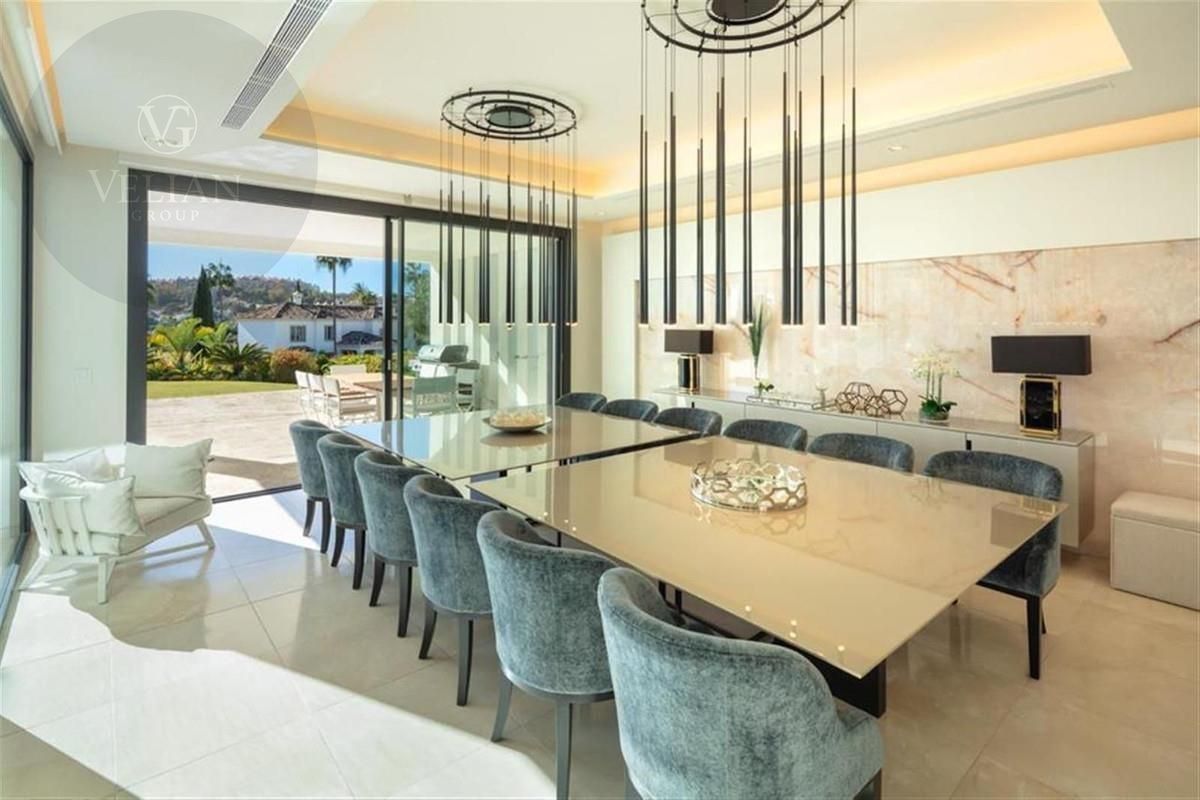 Distribuida en 3 niveles, esta fabulosa villa tiene 6 dormitorios, 6 baños súper modernos y 2 aseos. Le da la bienvenida a un impresionante hall de entrada con techo de doble altura, que conduce a una gran sala de estar de planta abierta. El amplio y moderno salón está amueblado con muebles de alta calidad y tiene vistas al jardín subtropical. Está conectado con un imponente comedor y una elegante cocina de última generación. Las zonas de salón y comedor tienen acceso directo a las terrazas cubiertas y descubiertas, con varias zonas de descanso y comedor al aire libre, y una piscina infinita con un factor sorpresa. Arriba, la villa le da la bienvenida a habitaciones amplias y serenas, con vistas a las alfombras verdes de Los Naranjos Golf. El nivel inferior cuenta con un área de entretenimiento extra grande con sala de televisión y la posibilidad de personalizarla con más funciones.
