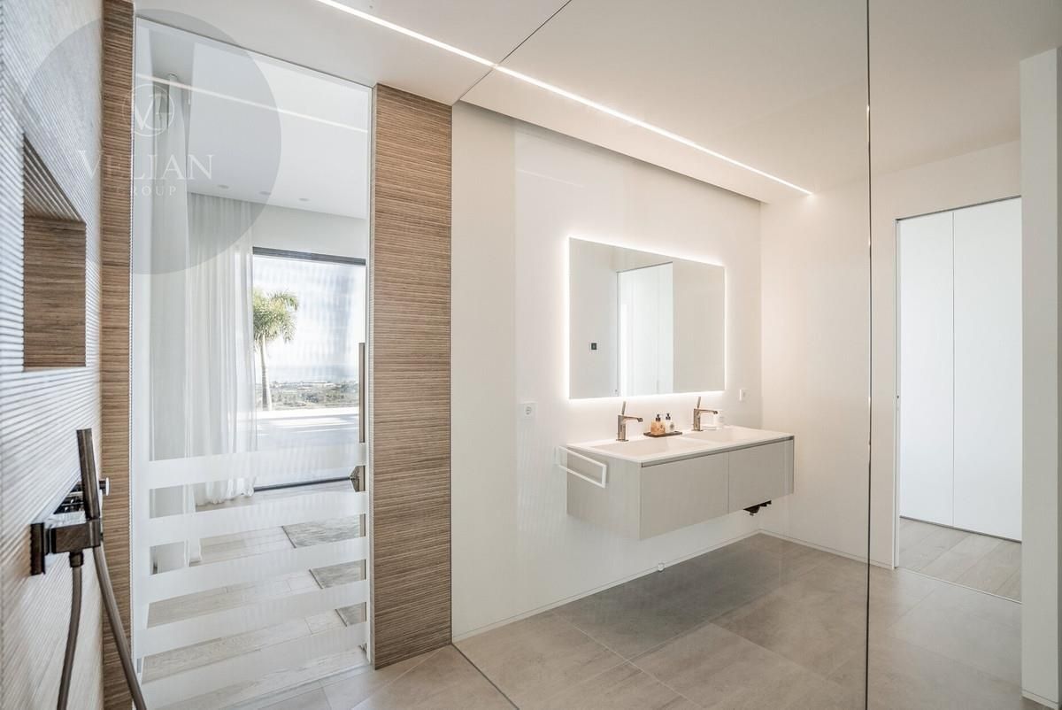 Si desea explorar más lejos, le espera un ascensor, listo para transportarlo al primer piso. Al ascender, la anticipación construye para lo que está por delante. La primera planta es el hogar de dos dormitorios principales, destacando el lujo y la comodidad. Cada dormitorio principal cuenta con un amplio walk-in closet, garantizando un amplio almacenamiento para su armario y accesorios. Los baños en-suite están elegantemente diseñados, con accesorios y acabados de alta gama.
