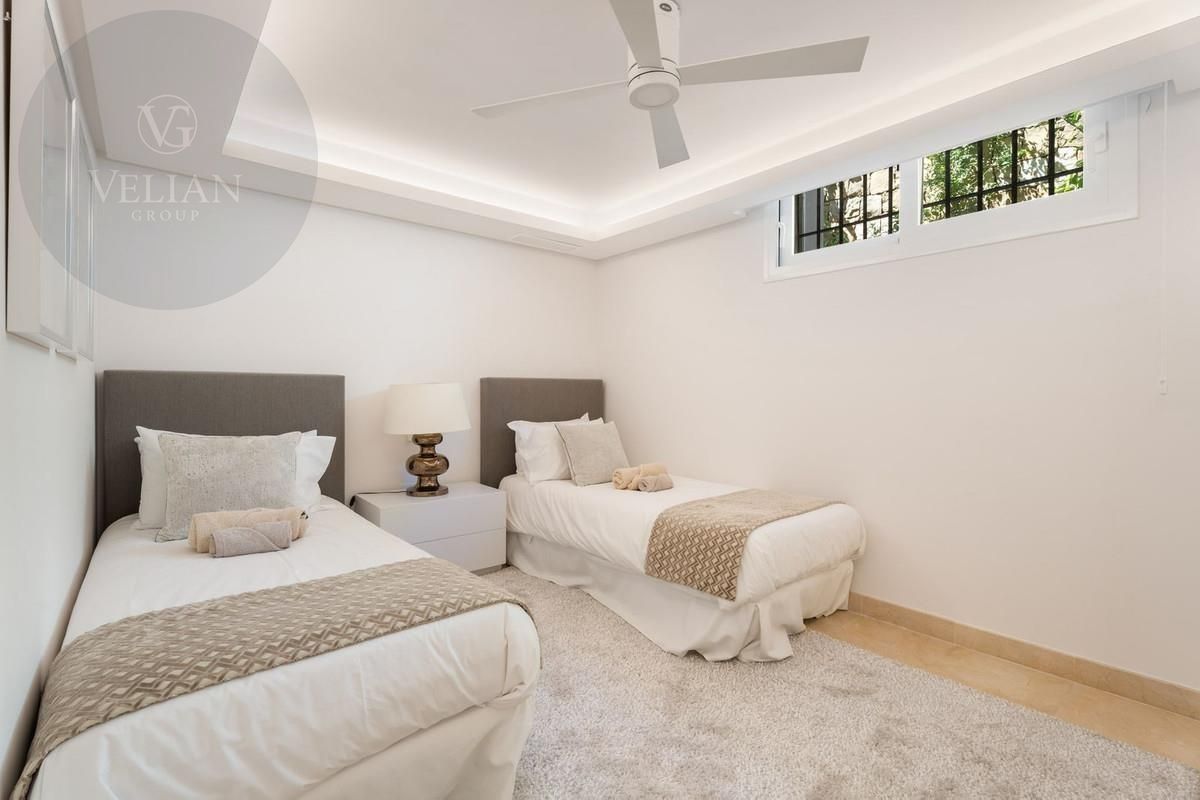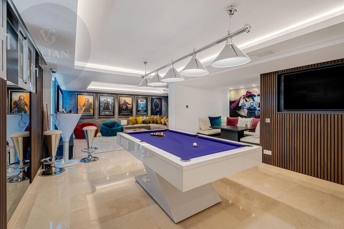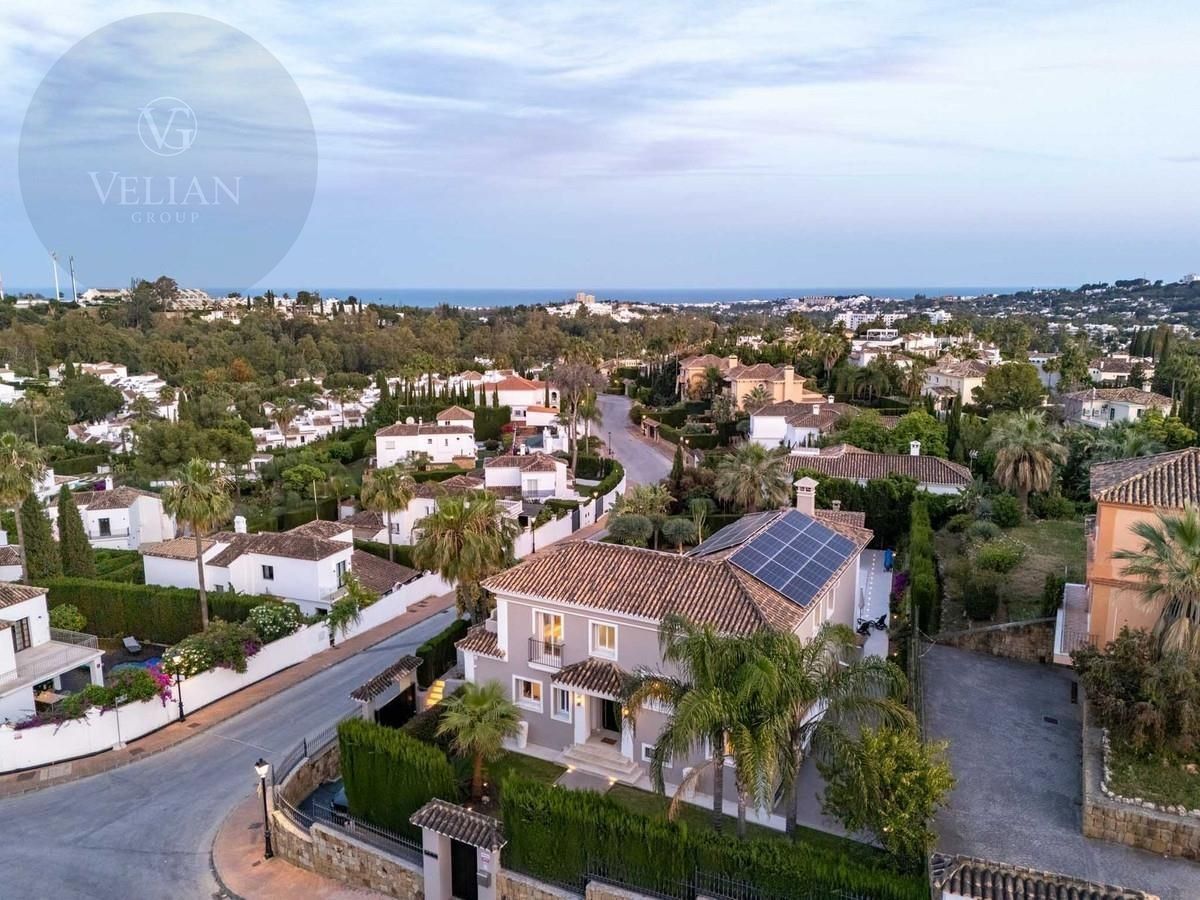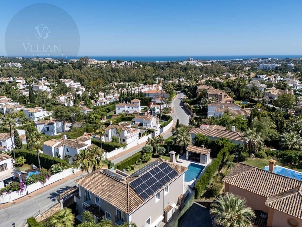 Entre los equipamientos destacan: aire acondicionado individual, persianas eléctricas, doble acristalamiento, sistema de alarma, cámaras de vigilancia, puerta blindada y entrada por videoportero. La propiedad incluye también paneles solares, sistema Dolby Stereo Surround, conexión a internet Wi-Fi, televisión por satélite y armarios empotrados. Su proximidad a servicios, transporte, colegios, golf, playas, puerto, tiendas y zonas infantiles convierten esta villa en una oportunidad única para quienes buscan lujo, seguridad y una ubicación inmejorable en Marbella.