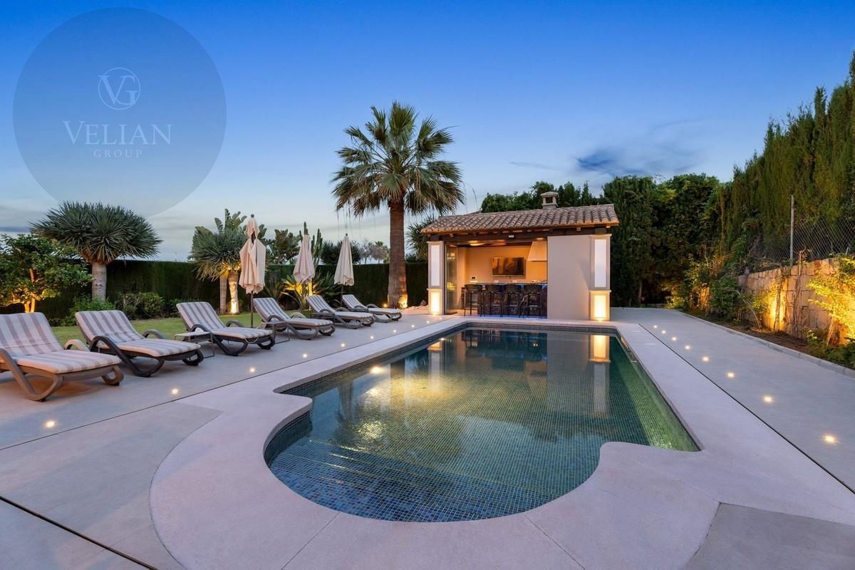 Las zonas exteriores son un verdadero oasis, con una piscina privada, jardines cuidados con sistema de riego automático y varias terrazas cubiertas y descubiertas que permiten disfrutar del clima mediterráneo. El área de barbacoa, la sala de juegos, el cine en casa y el sótano ofrecen espacios versátiles para el entretenimiento. Además, la vivienda dispone de garaje privado, trastero y está adaptada para personas con movilidad reducida.