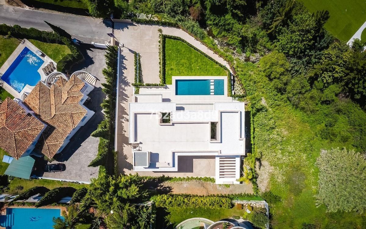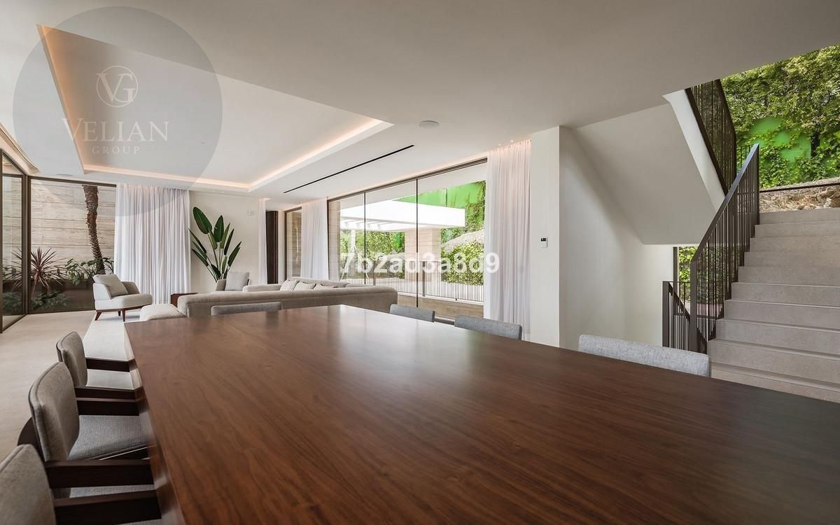 Disfrutando de una parcela de esquina privilegiada con su propia entrada en una cale sin salida, esta hermosa, nueva villa cuenta con un diseño espectacular y acabado. Las características incluyen un total de más de 900m2 de construcción en 3 plantas más un glorioso solárium en la azotea. Además de la excepcional superficie habitable, la propiedad también cuenta con domótica de última generación, calefacción por suelo radiante, un gimnasio y spa y su propia bodega. Aparcamiento interior para 3 coches y puertos de coche para 2 más añadir a la privacidad y seguridad. La villa está recién acabada y está lista para entrar a vivir.
