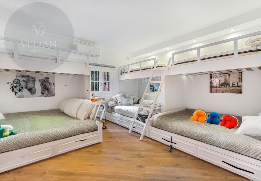 Magnífico chalet de seis dormitorios situado en Hacienda Las Chapas, Marbella. Esta propiedad está cerca de comodidades, campos de golf y la playa, con sólo diez minutos en coche a Marbella. La villa cuenta con espectaculares vistas al mar tanto de la planta baja como de la primera planta; el nivel de entrada tiene un amplio salón y comedor con construido en chimenea, salón y acceso a la terraza, jardín y piscina privada; cocina totalmente equipada; suite de invitados; y un aseo de invitados. La primera planta tiene la suite principal con paseo en closet y amplia terraza con hermosas vistas al mar y la piscina; cuatro suites de invitados y una terraza con maravillosas vistas al mar. El nivel inferior de la propiedad conduce al gimnasio y el spa, completo con baño, sauna y Hamam. También hay un trastero; lavadero; y sala de estar en este nivel. Otras características incluyen aire acondicionado frío y caliente, puerto de doble coche, armarios empotrados y paneles solares. También hay un proyecto aprobado para añadir una casa de huéspedes independiente de 130m2 con tres dormitorios y baños.