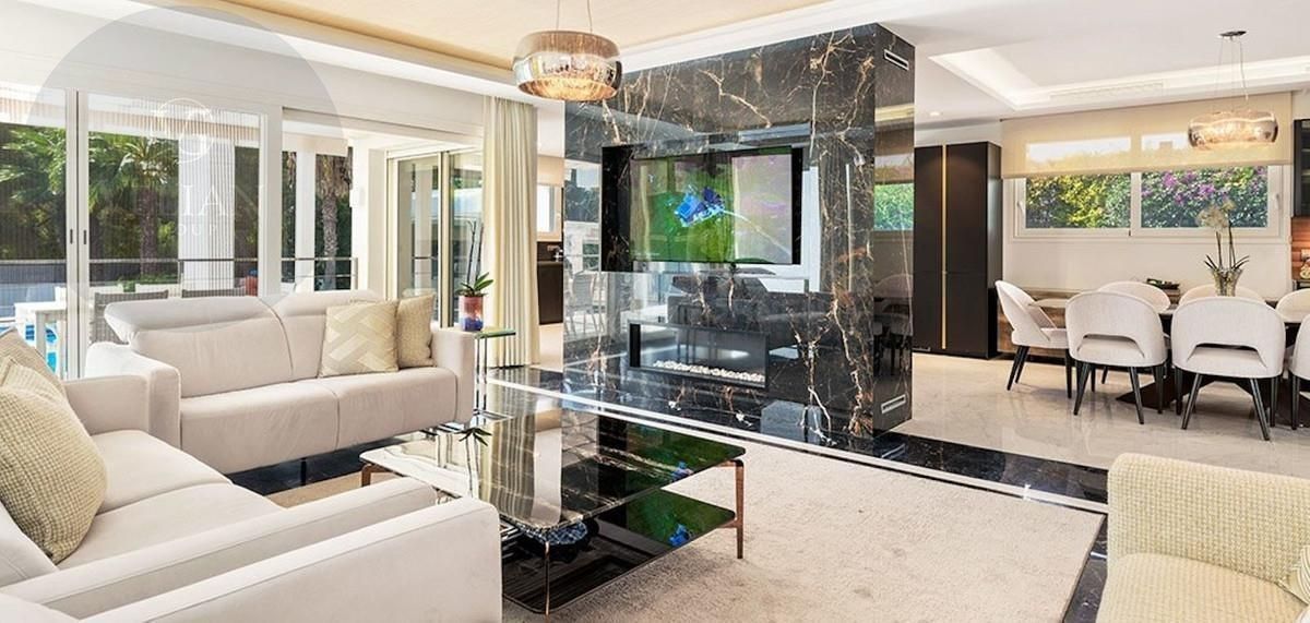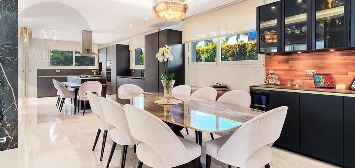 Esta villa recientemente renovada de siete dormitorios ubicada en una extensa parcela de 1770 m2 entre Aloha y Las Brisas presenta una combinación armoniosa de sofisticación y comodidad.