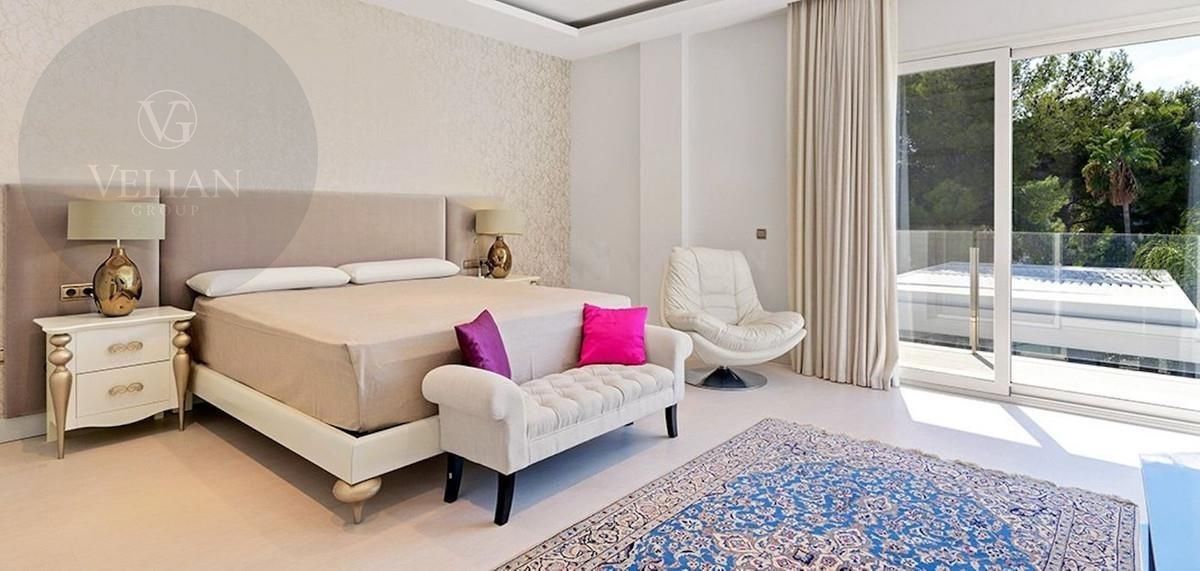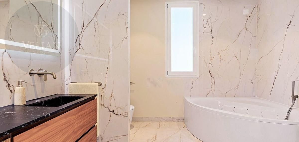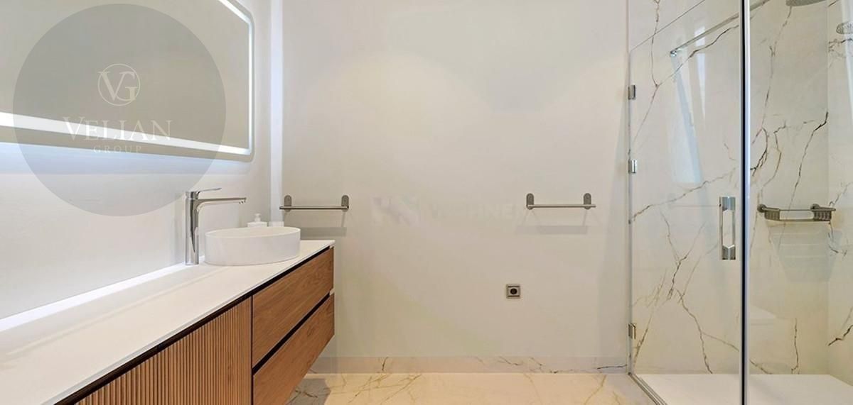 Con un ascensor que da servicio a los tres niveles, este moderno santuario revela una gran cantidad de espacio y opulencia. Ingrese a la gran entrada bañada de luz natural, que lo guiará a una amplia sala de estar de planta abierta adornada con una elegante chimenea. El corazón de esta casa se encuentra en la cocina recién equipada, completa con una isla para cocinar que también funciona como barra de desayuno y se fusiona perfectamente con un comedor para ocho personas. Grandes puertas correderas conducen a una amplia terraza cubierta con vistas a la piscina de 15 metros, completa con una cubierta eléctrica alimentada por energía solar que garantiza comodidad durante todo el año.