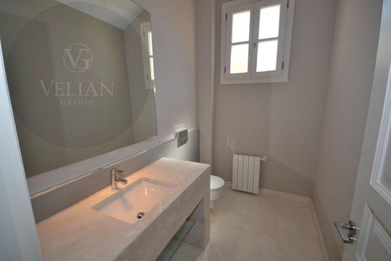 La casa ofrece una hermosa área de entrada, con un patio español con naranjos que rodea una fuente que se acerca a la casa principal, que consta de un hall de entrada con una escalera que conduce a la planta superior, que continúa hacia la sala de estar con chimenea, una cocina equipada que funciona Isla en el lado derecho con comedor, lavandería adyacente y alojamiento para el personal.