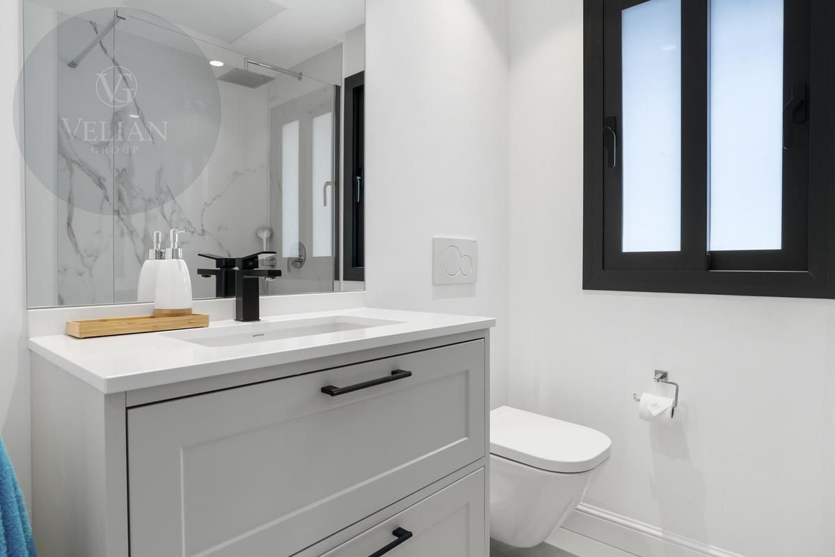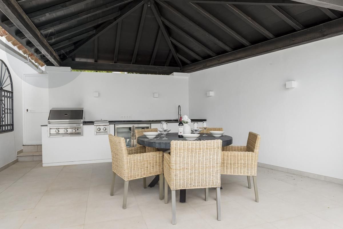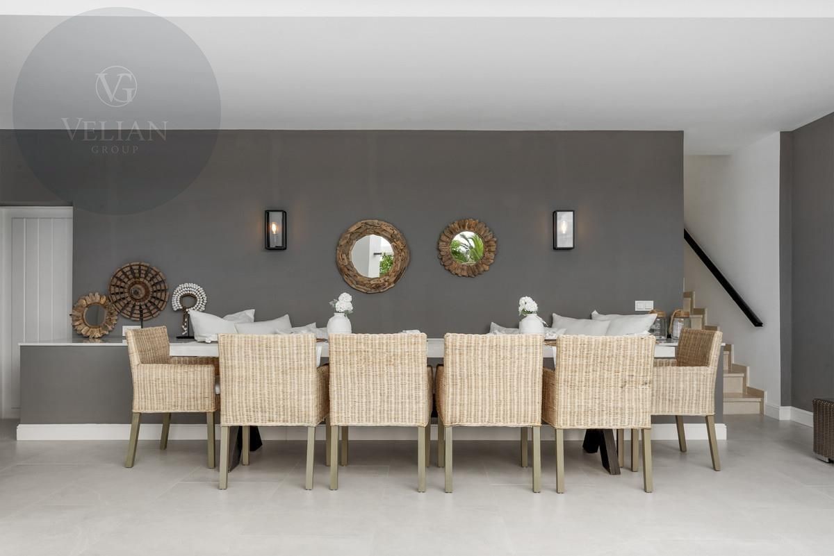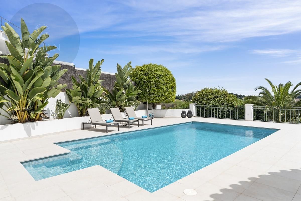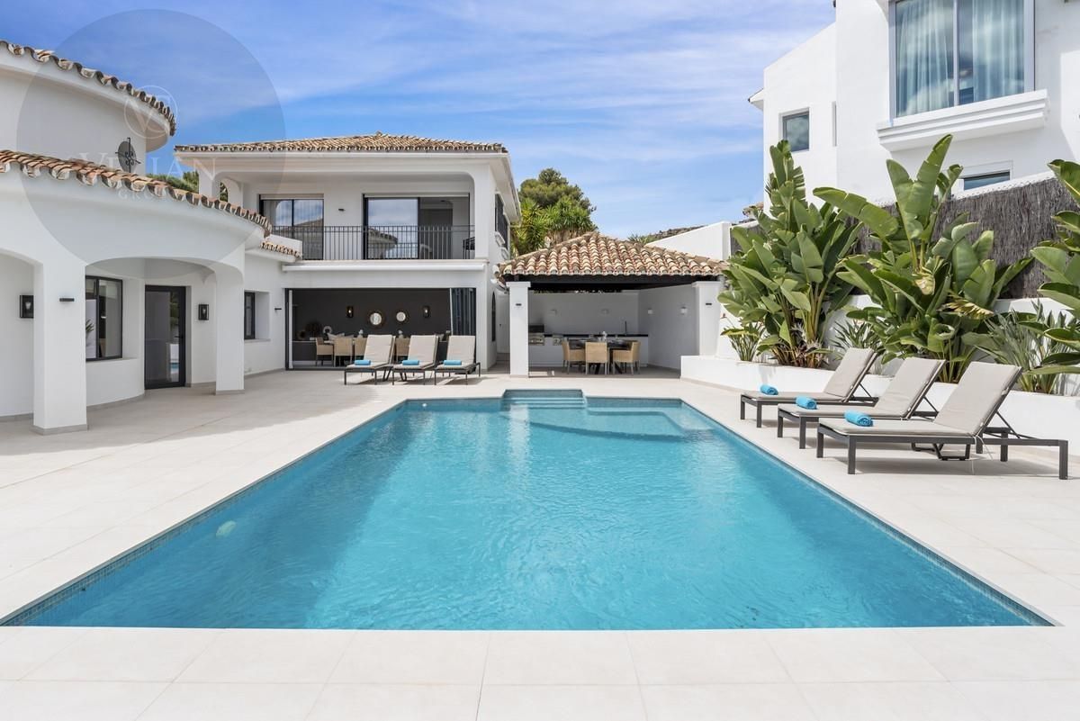 Al aire libre, la villa cuenta con una gran piscina privada, modernas zonas chill-out y hermosos jardines en una parcela de 1.308m2, todo diseñado para maximizar el estilo de vida mediterráneo.