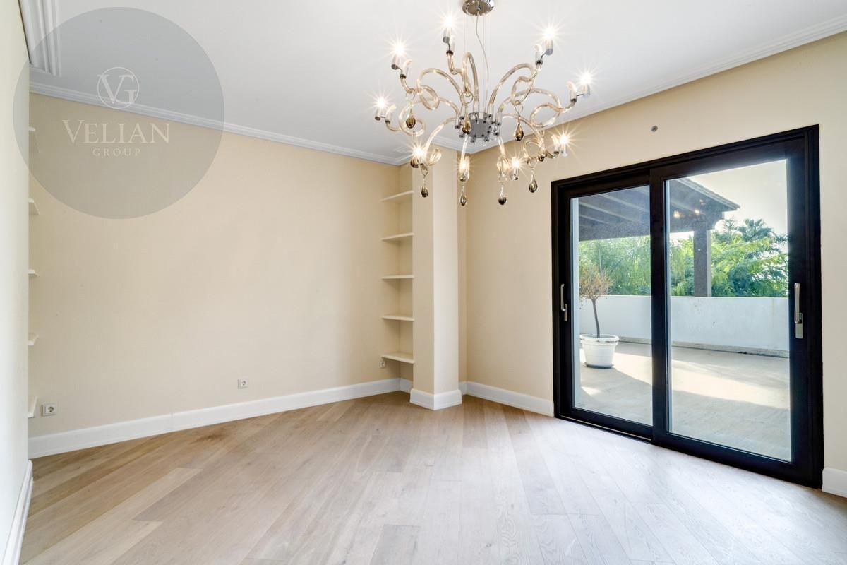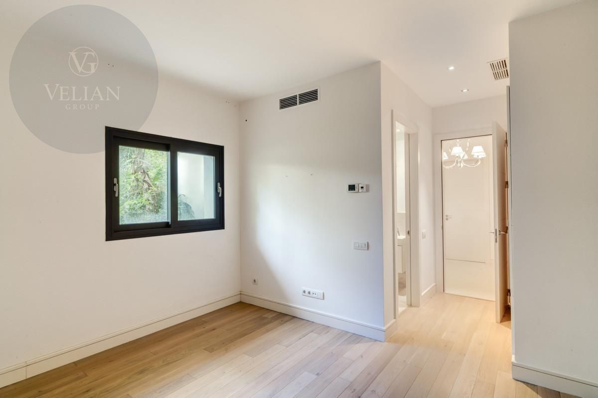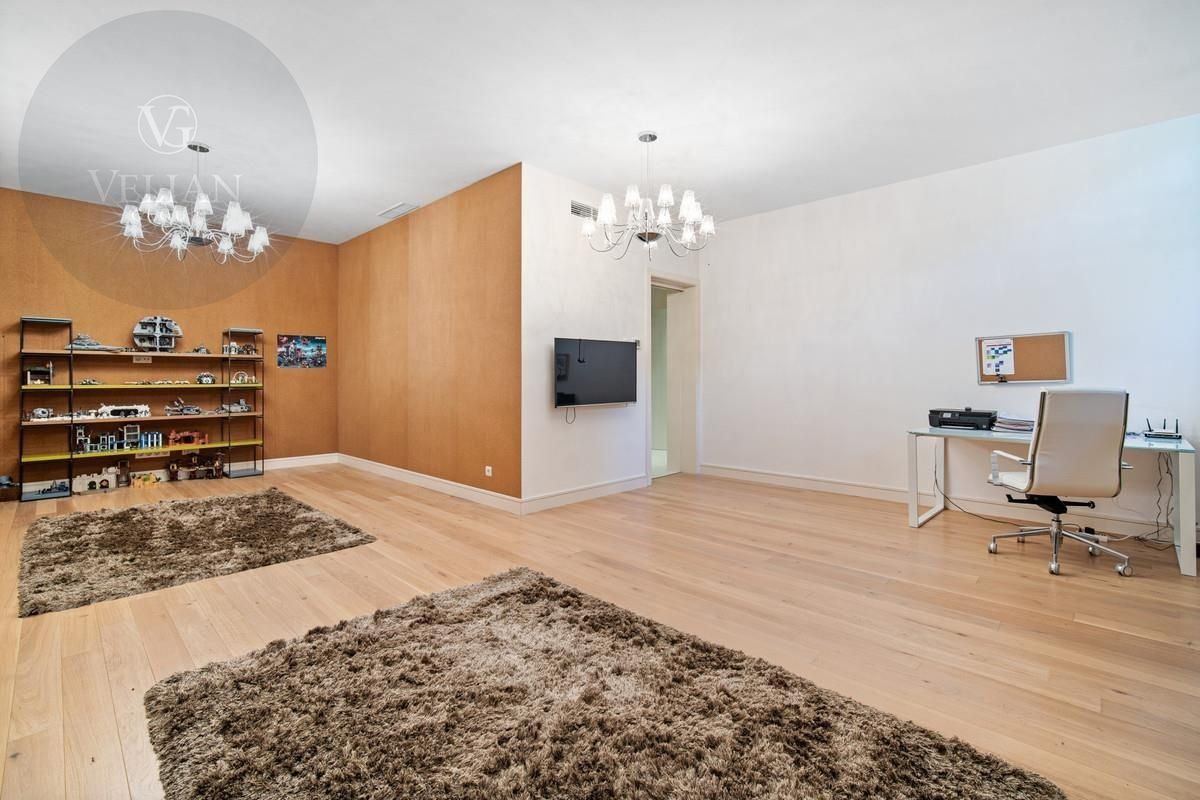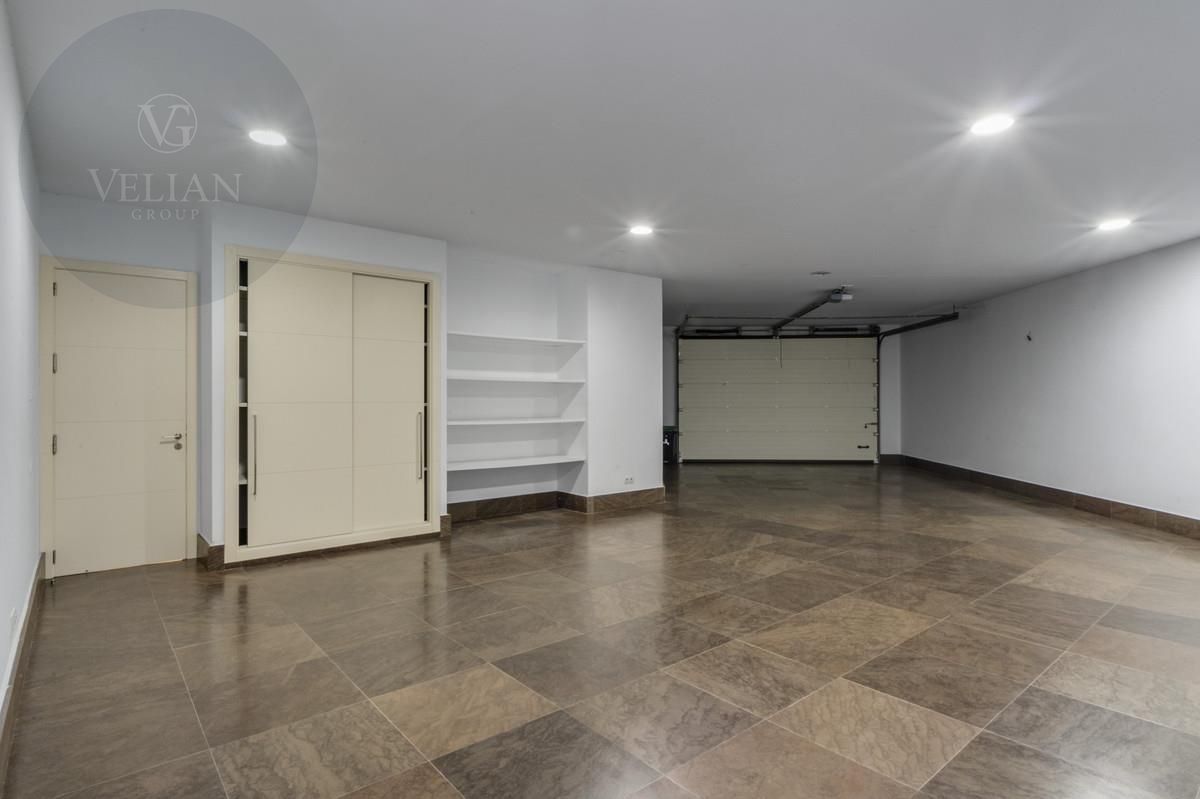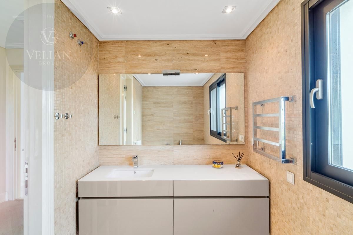La planta superior tiene tres dormitorios, cada uno con baño en suite, y una terraza soleada con vistas parciales al mar. El sótano consta de dos dormitorios adicionales con baños, una sala de juegos, un lavadero, una sauna, un hammam y un garaje con suficiente espacio para cuatro coches. La casa también tiene su propio ascensor.