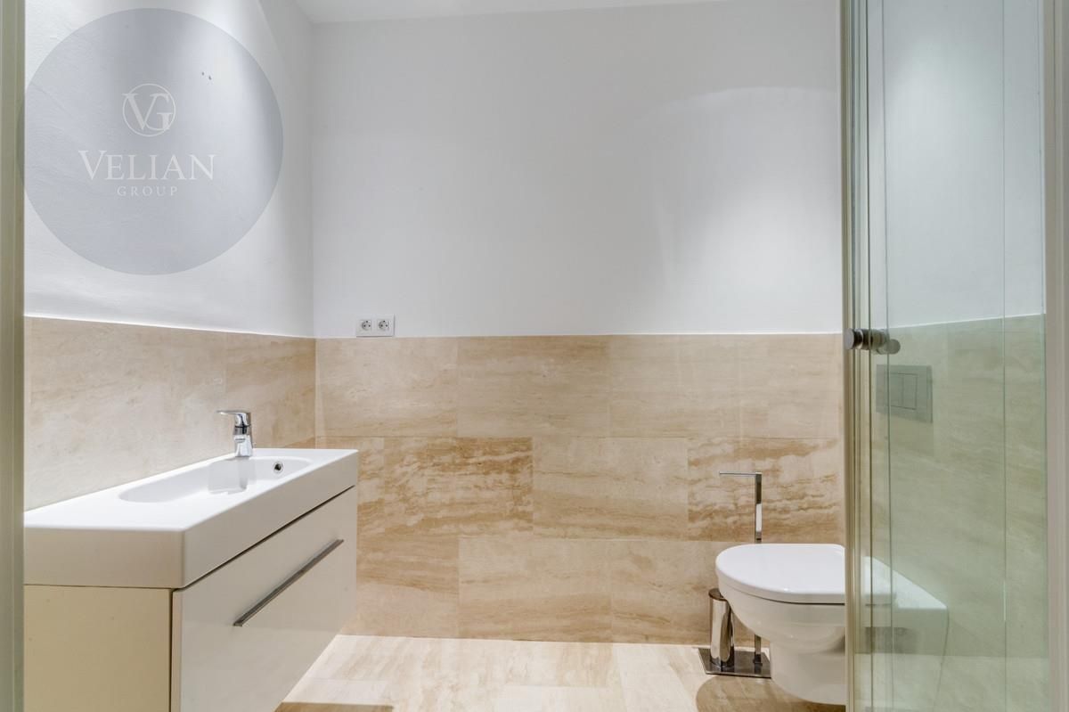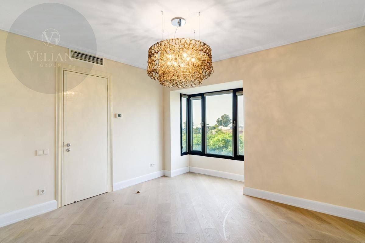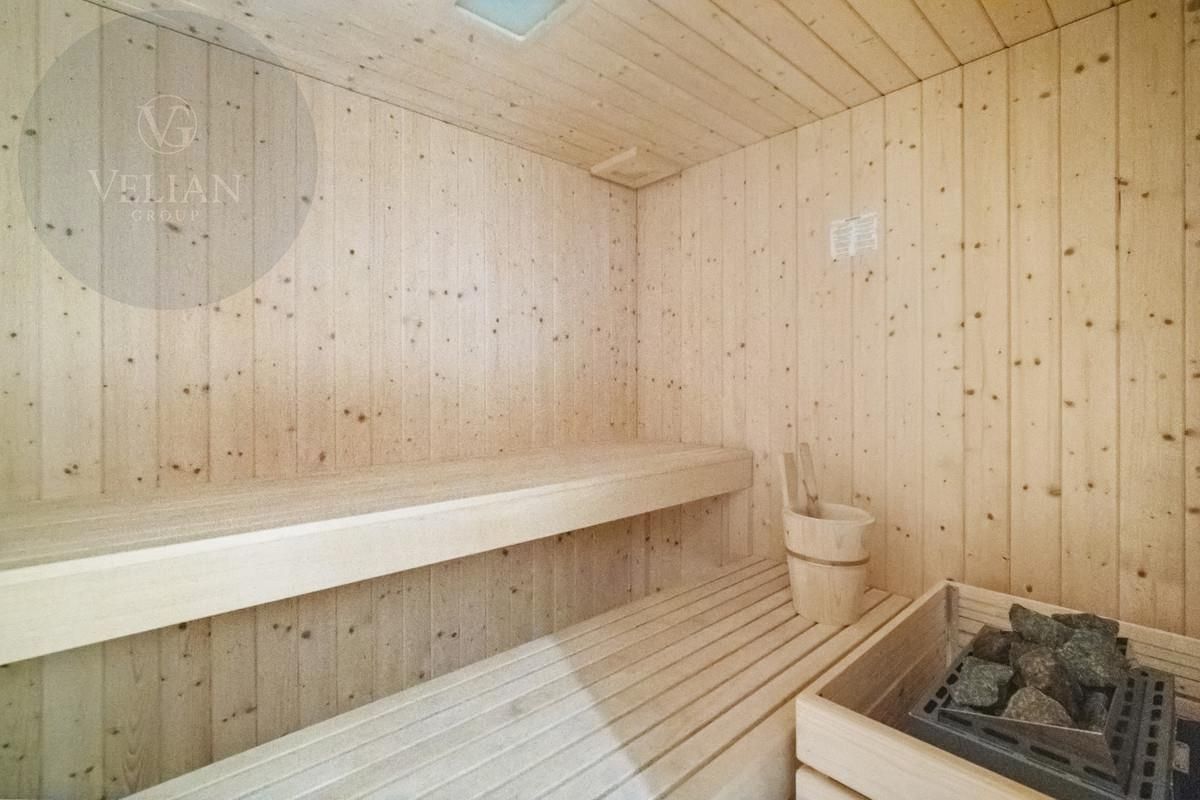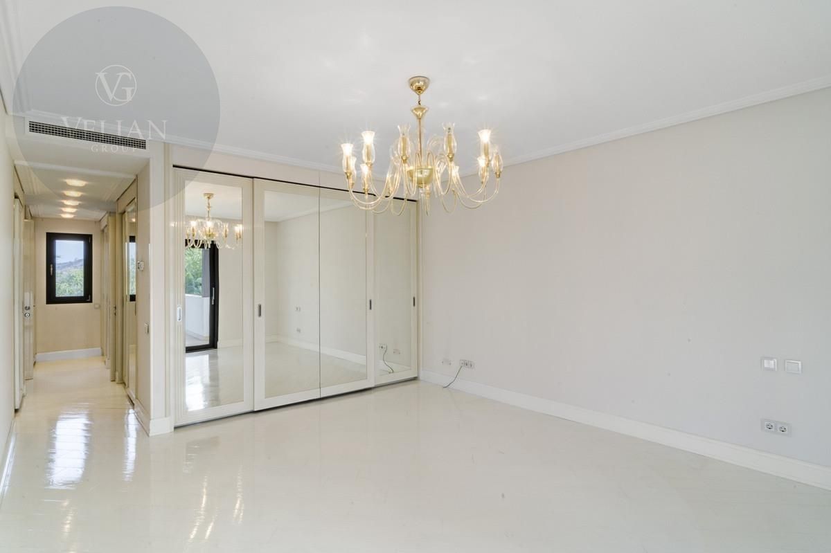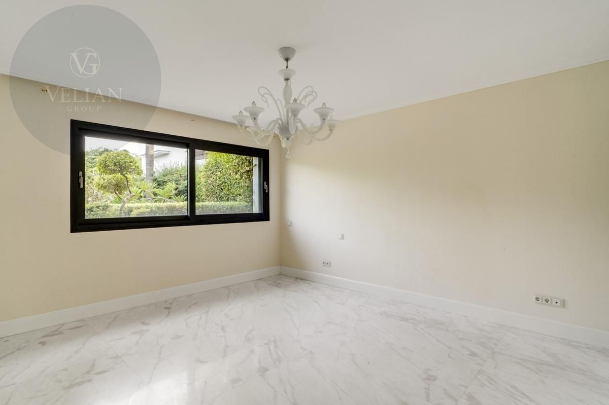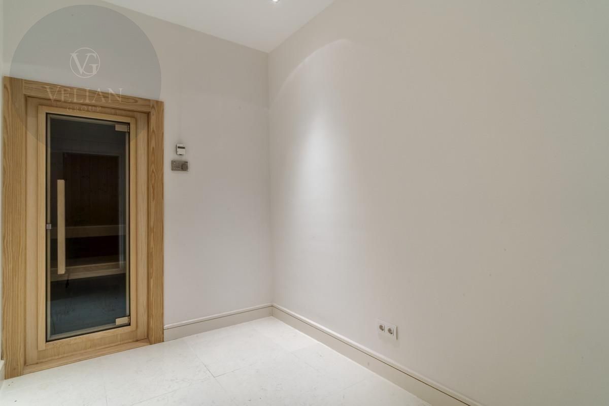 La planta superior tiene tres dormitorios, cada uno con baño en suite, y una terraza soleada con vistas parciales al mar. El sótano consta de dos dormitorios adicionales con baños, una sala de juegos, un lavadero, una sauna, un hammam y un garaje con suficiente espacio para cuatro coches. La casa también tiene su propio ascensor.