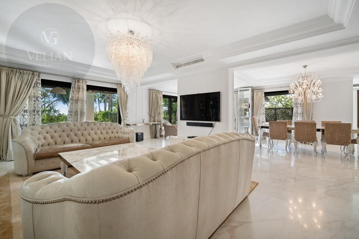 Maravillosa villa de lujo en Lomas de Magna Marbella, uno de los complejos más prestigiosos de la Milla de Oro de Marbella. La villa está situada dentro de una comunidad cerrada que ofrece servicio de seguridad las 24 horas, dos grandes piscinas comunitarias y exuberantes jardines tropicales de increíble belleza. Está convenientemente situado cerca de todas las comodidades, incluyendo supermercados, tiendas, restaurantes, escuelas y campos de golf, y está a sólo cinco minutos en coche del mar.