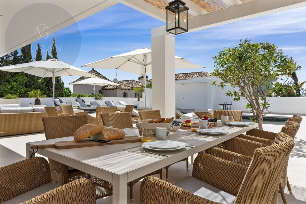 Sirviendo como un testimonio de encanto y elegancia, esta villa de lujo completamente renovada ofrece un hogar excepcional para propietarios exigentes. Situada a pocos pasos de una de las mejores playas de Marbella, Casa Rosario promete una experiencia costera de lujo con sus modernas comodidades y entorno impresionante, y por lo tanto se presenta como una encantadora propiedad residencial para una familia o una excelente casa de alquiler para aquellos que buscan una oportunidad de inversión.