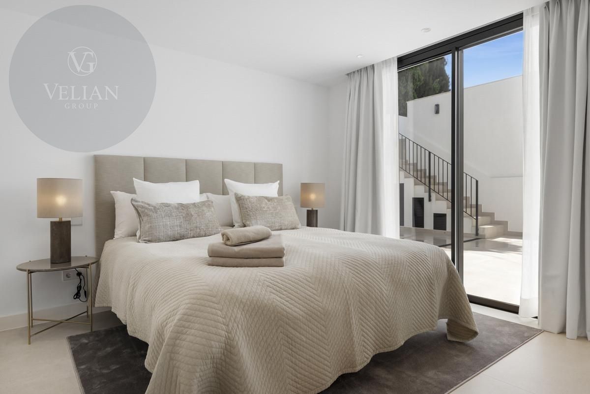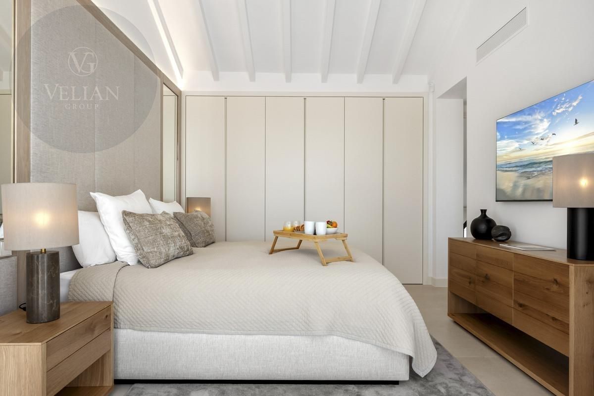El punto culminante de Casa Rosario es sin duda el dormitorio principal, ubicado en la planta superior. Ofreciendo impresionantes vistas al mar Mediterráneo, este lujoso refugio cuenta con un balcón privado con tumbonas y un íntimo salón de café, perfecto para disfrutar de las vistas panorámicas.