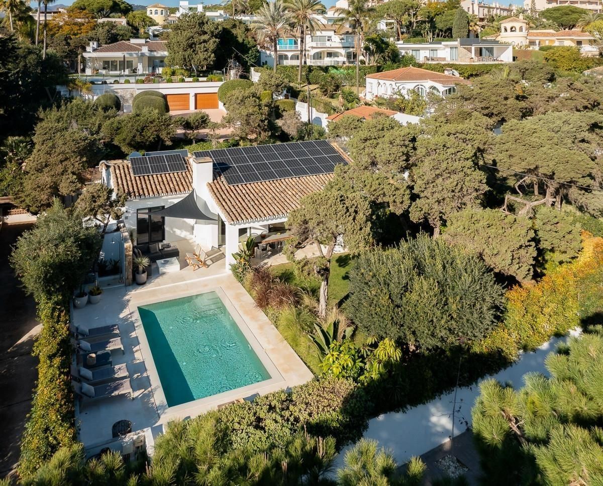 Impresionante villa de una sola planta situada en la tranquila y solicitada zona de Marbesa, al este de Marbella. Esta propiedad bellamente diseñada cuenta con tres dormitorios más un espacio de oficina, por lo que es ideal tanto para la relajación como para la productividad. La villa se sometió a una reforma completa en 2010, meticulosamente llevada a cabo por un arquitecto muy conocido en el región y internacional. Su visión fusionó con éxito la arquitectura clásica española con la sofisticación contemporánea, dando como resultado una casa que es a la vez elegante y funcional. A lo largo de la renovación se seleccionaron cuidadosamente materiales duraderos y de alta calidad, que garantizan la longevidad y un acabado impecable. El mobiliario hecho a medida realza aún más la elegancia de la villa. Con una distribución bien pensada que ofrece amplios espacios interiores y exteriores, esta casa garantiza un confort y una practicidad excepcionales. Además, se encuentra a pocos minutos a pie de la playa.