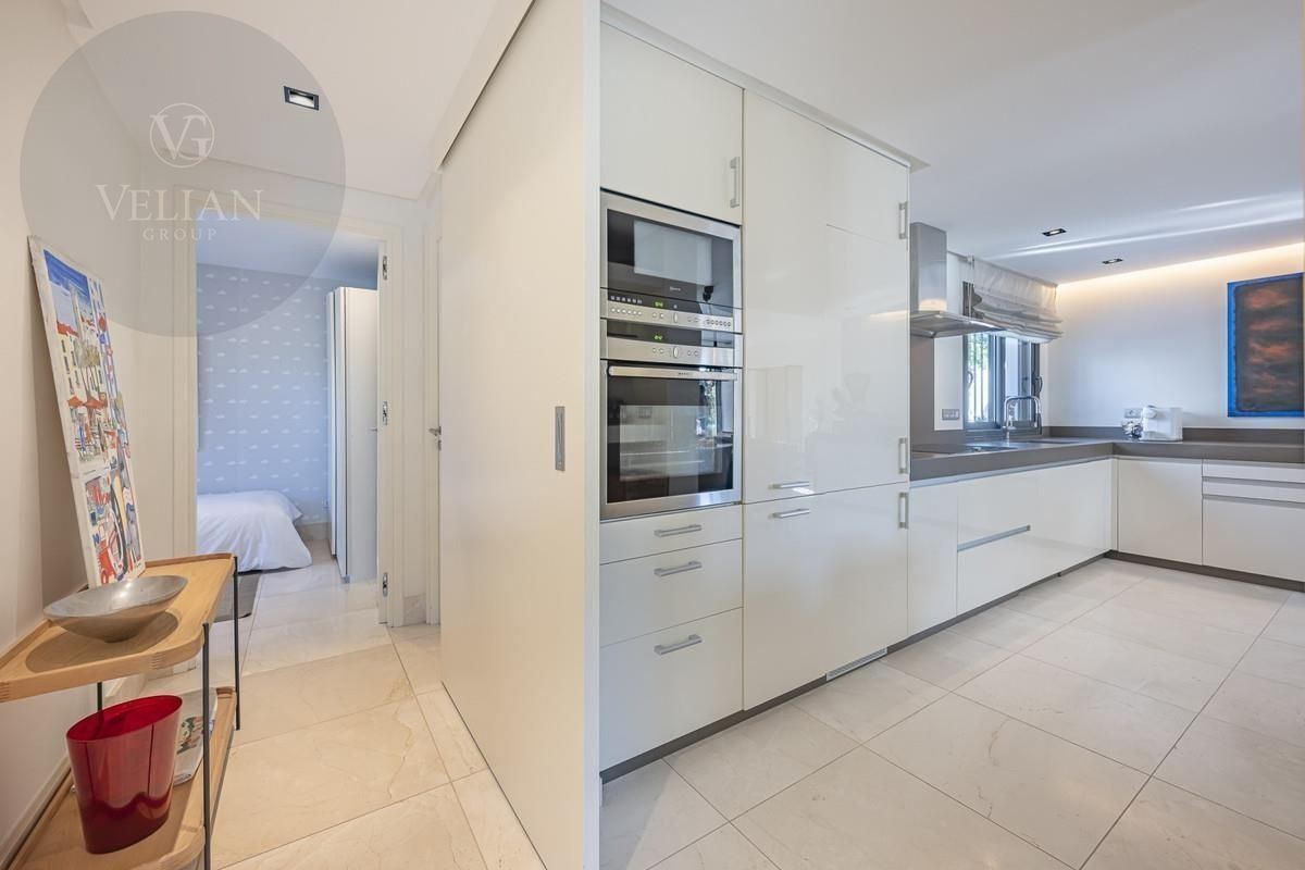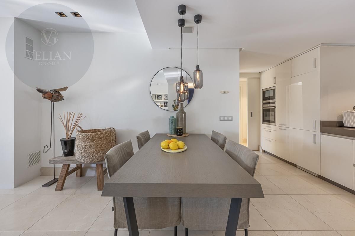 El interior refleja elegancia y confort en cada detalle. El salón, con su cálido ambiente y su distribución abierta, es un espacio que invita tanto a la relajación como a las reuniones sociales. La cocina, perfectamente integrada en el salón, está totalmente equipada con electrodomésticos de última generación. Los armarios hechos a medida y los acabados de alta gama hacen de este espacio un sueño para los amantes de la cocina. Cada elemento de la renovación se ha seleccionado cuidadosamente para potenciar la funcionalidad y el atractivo estético, garantizando un hogar a la vez elegante y práctico.