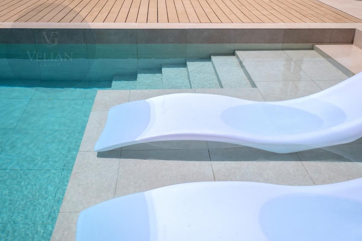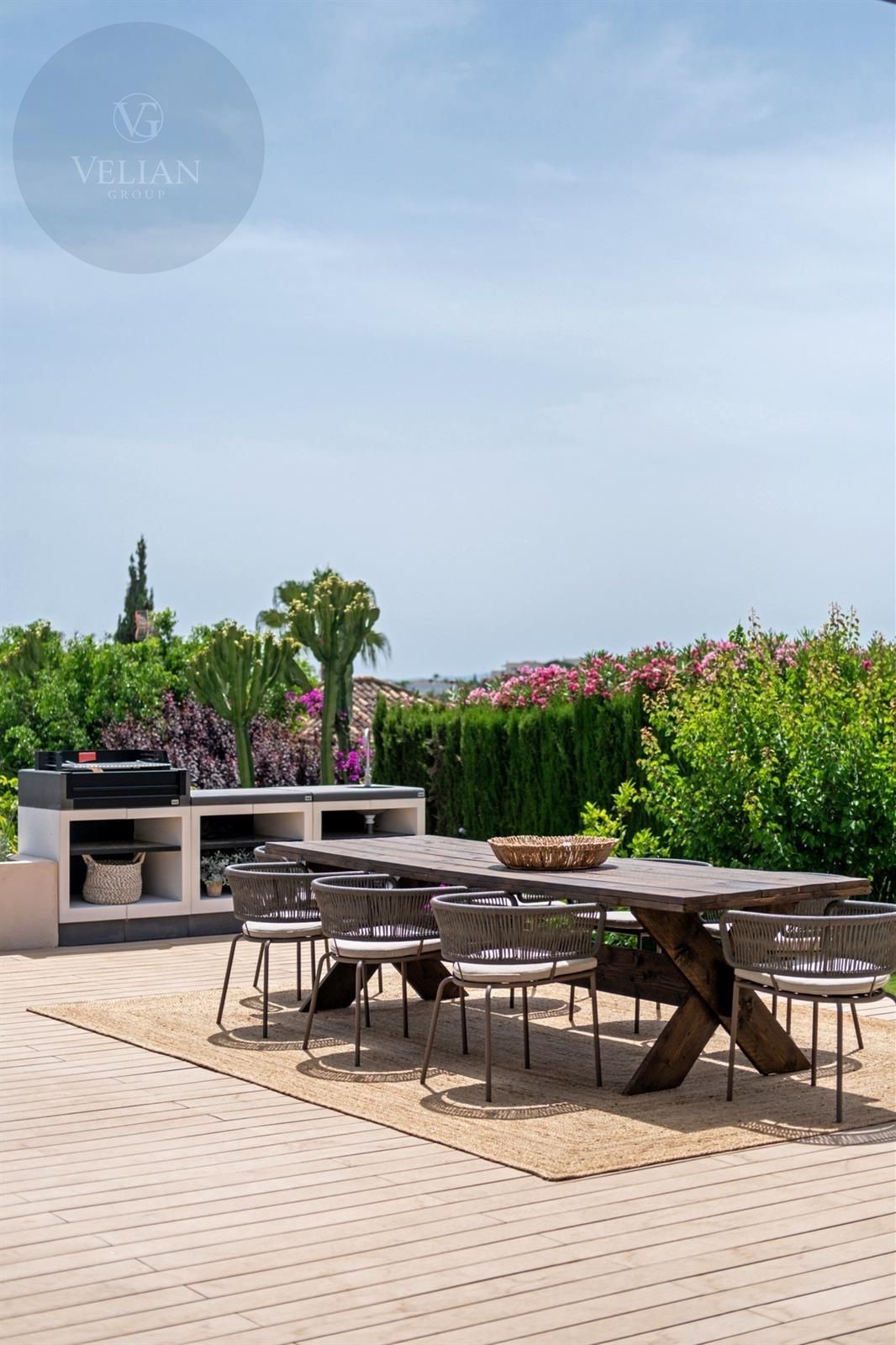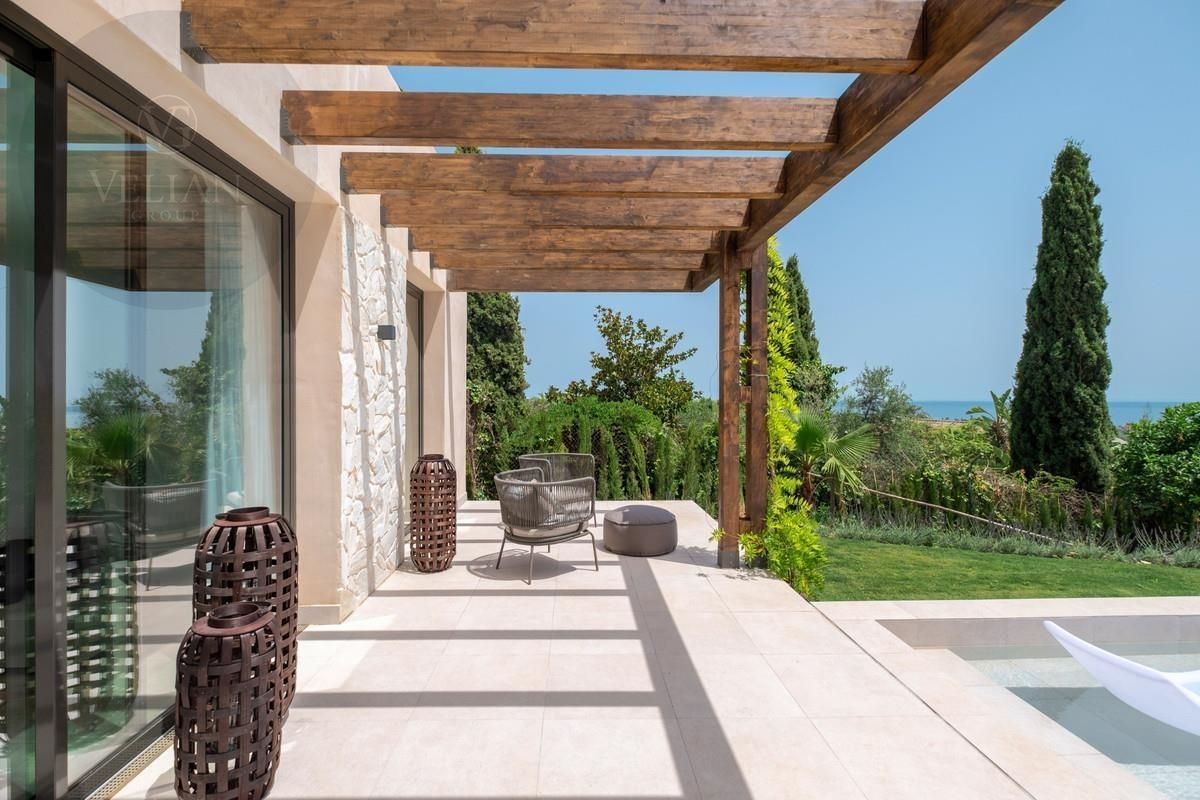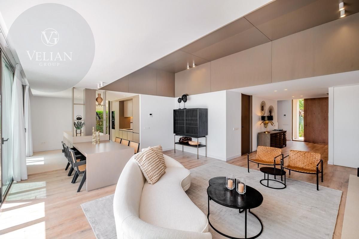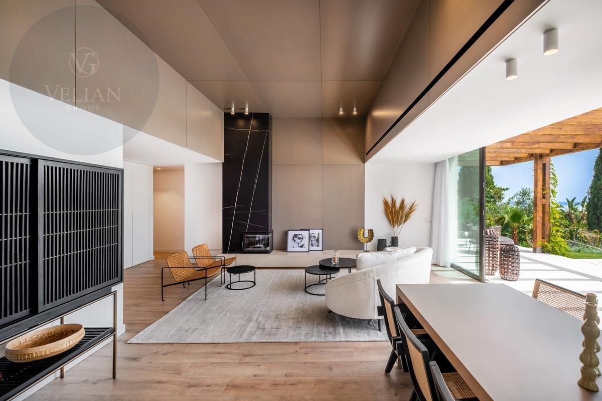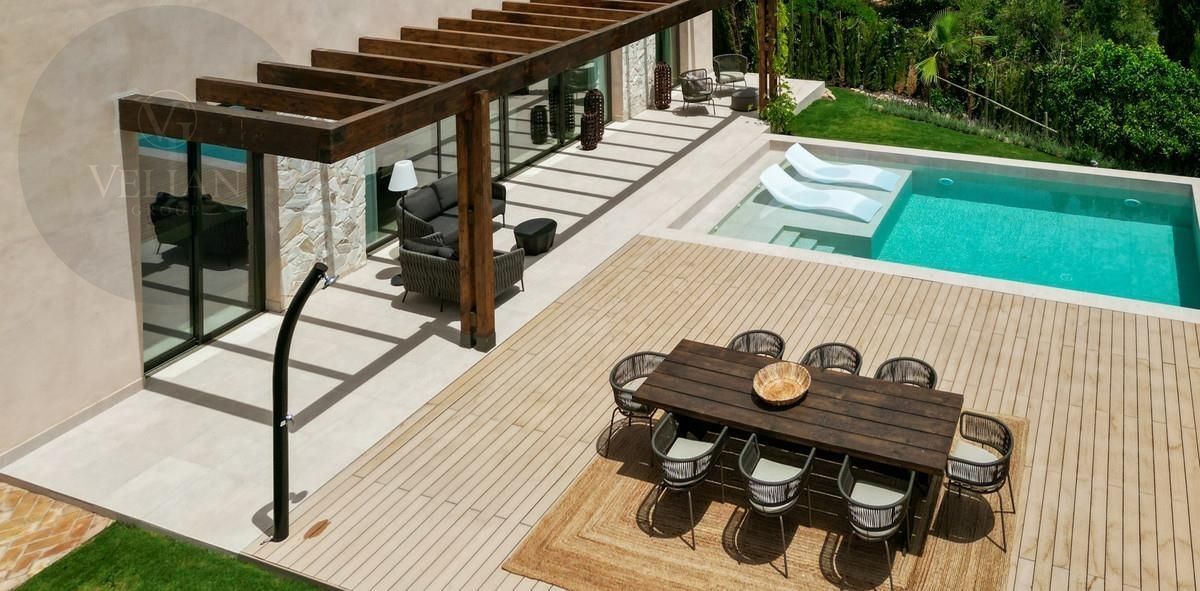 Los espacios exteriores de esta propiedad son tan atractivos como su interior. La terraza cubierta da acceso a un jardín paisajístico y cuenta con una piscina infinita que realza las vistas panorámicas al mar. Camas de sol integradas brindan el lugar ideal para disfrutar del sol mediterráneo, mientras que una terraza, pérgola, área de barbacoa y espacios chill-out crean el ambiente perfecto para reuniones sociales o para una relajación pacífica. Al caer el día, la terraza al atardecer ofrece un escenario ideal para noches de cine bajo las estrellas con su exclusivo cine nocturno a la luz de la luna.