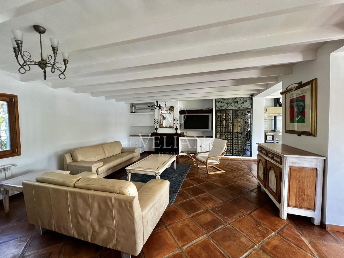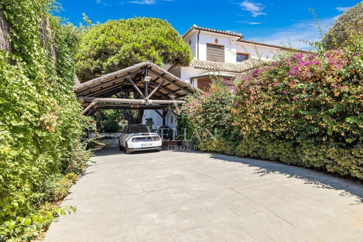 La villa de 397 m2 cuenta con 6 dormitorios dobles, 5 de ellos con baño en suite. Está a 3 minutos a pie de la playa y de los chiringuitos.
