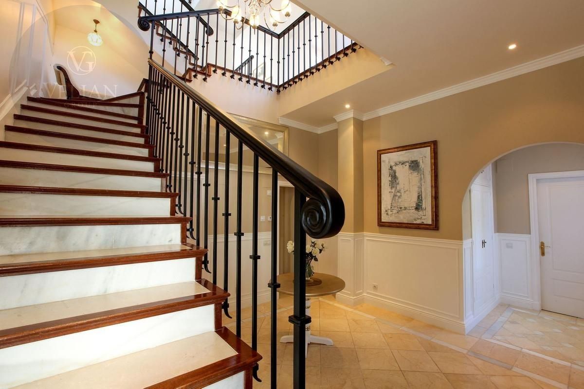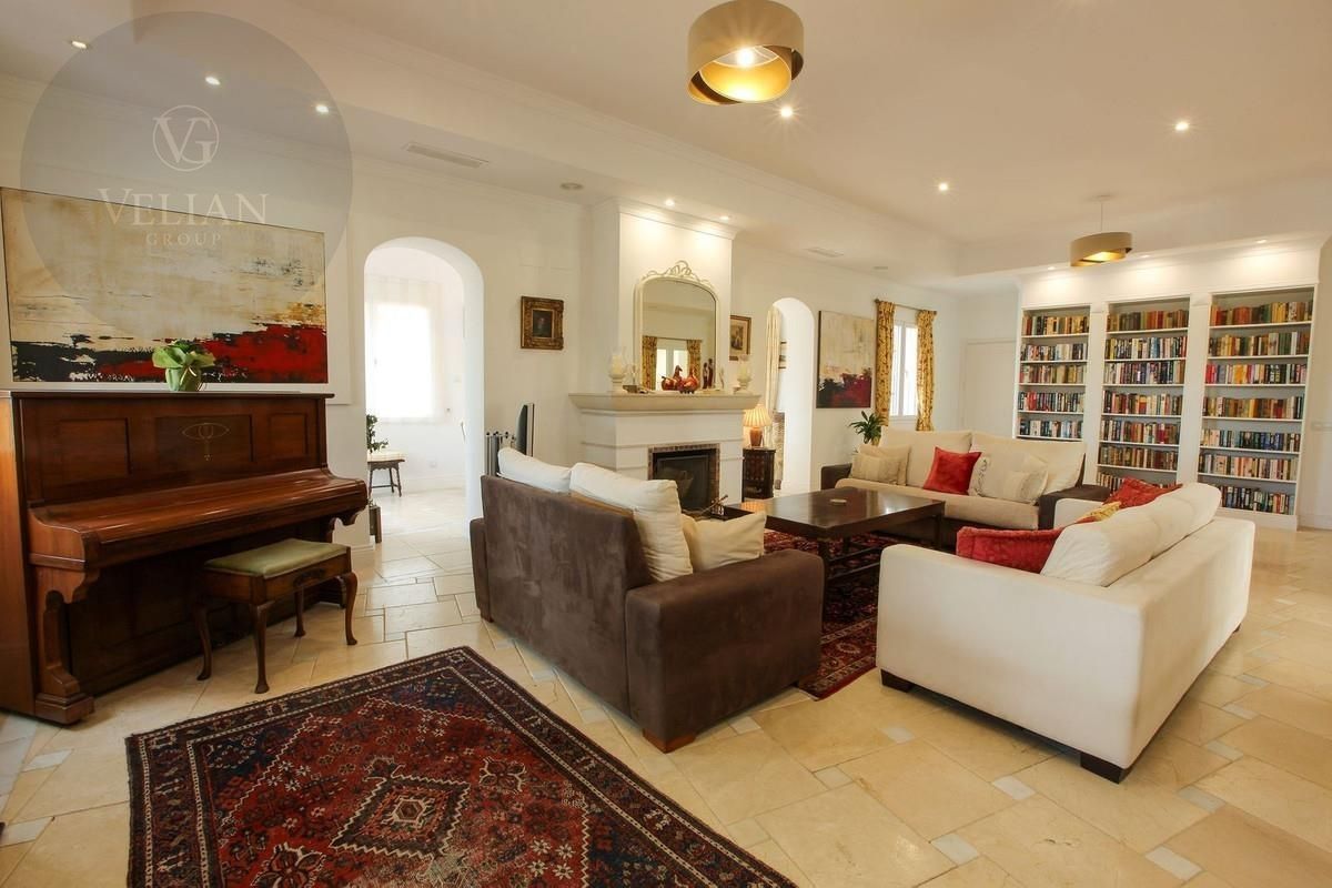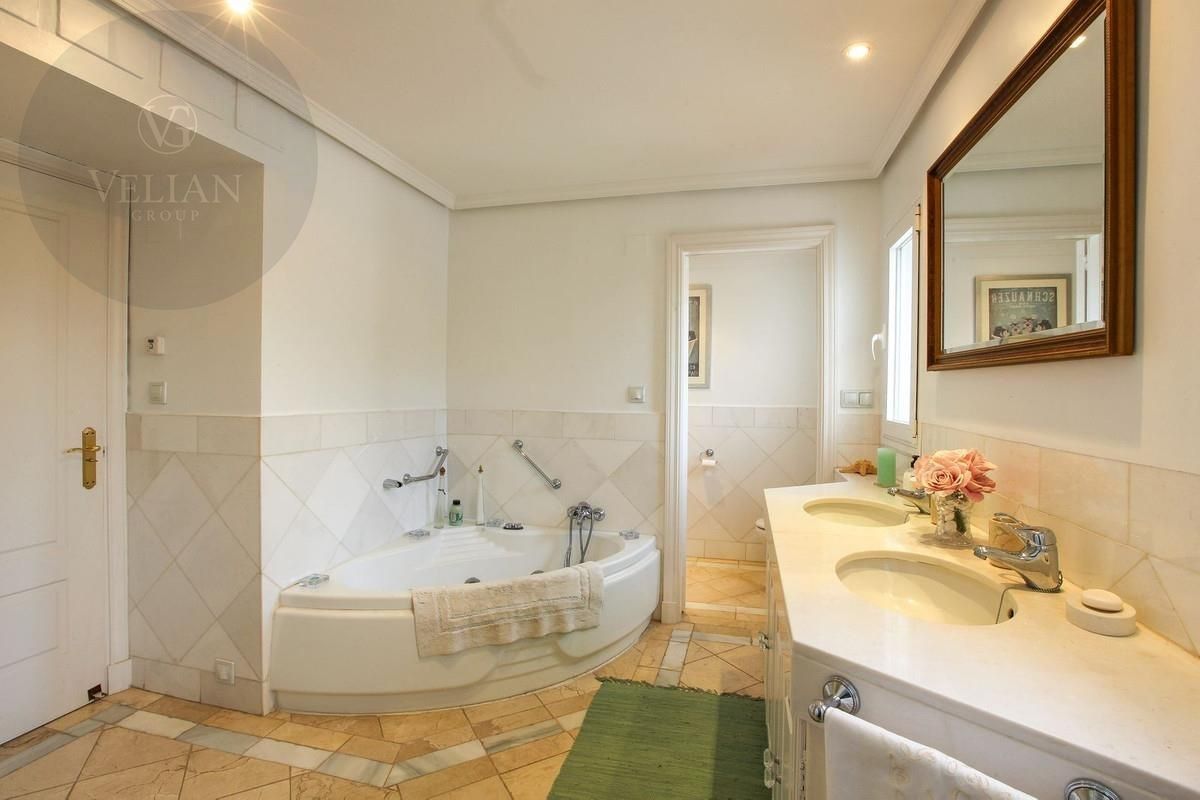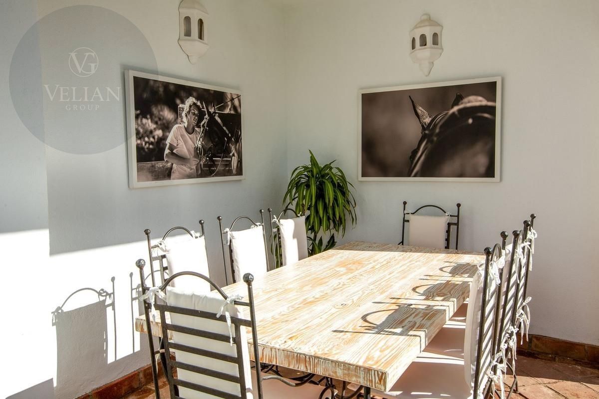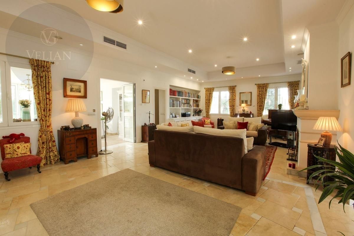 La villa cuenta con una entrada de doble altura que conduce a un espacioso salón con una gran y acogedora chimenea. Con cinco dormitorios en suite y un cuarto adicional para el personal de servicio, cada dormitorio está equipado con armarios de madera de alta calidad, y la suite principal incluye su propia chimenea para mayor confort.
