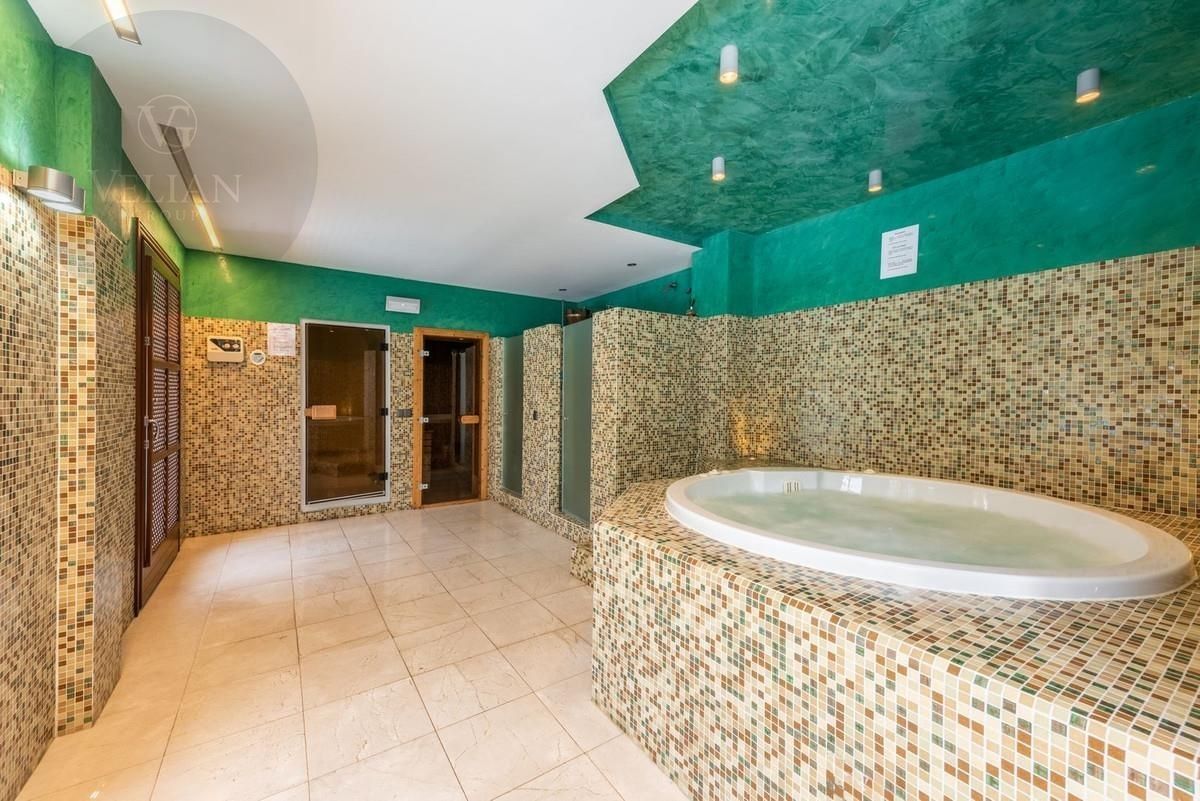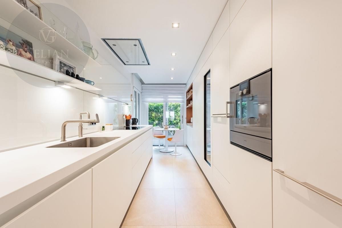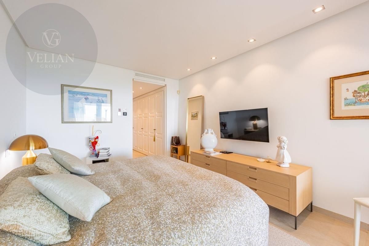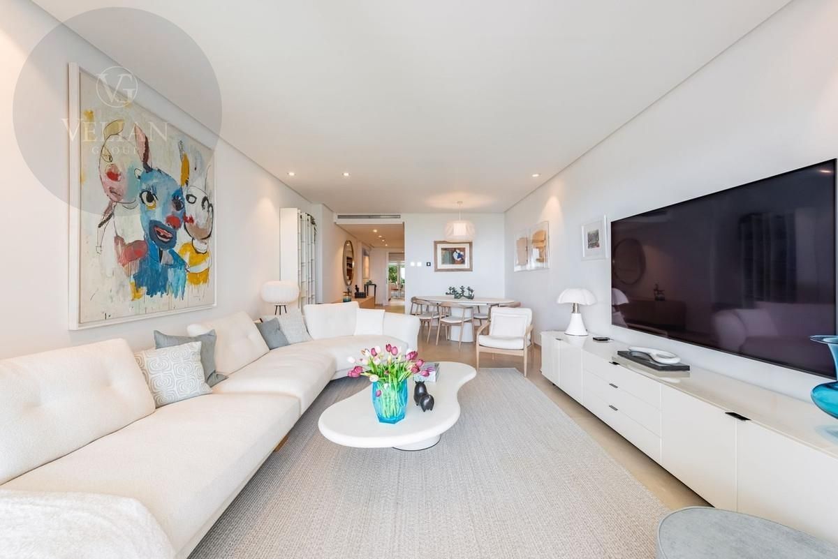 En el interior, un acogedor vestíbulo conduce a una luminosa y espaciosa sala de estar de concepto abierto, conectándose sin interrupciones a una gran terraza acristalada, ideal para disfrutar durante todo el año. La cocina moderna totalmente equipada cuenta con un cuarto de servicio adyacente para mayor comodidad. La suite principal incluye un lujoso baño en suite, mientras que el dormitorio de invitados disfruta de su propia terraza privada y un baño separado.